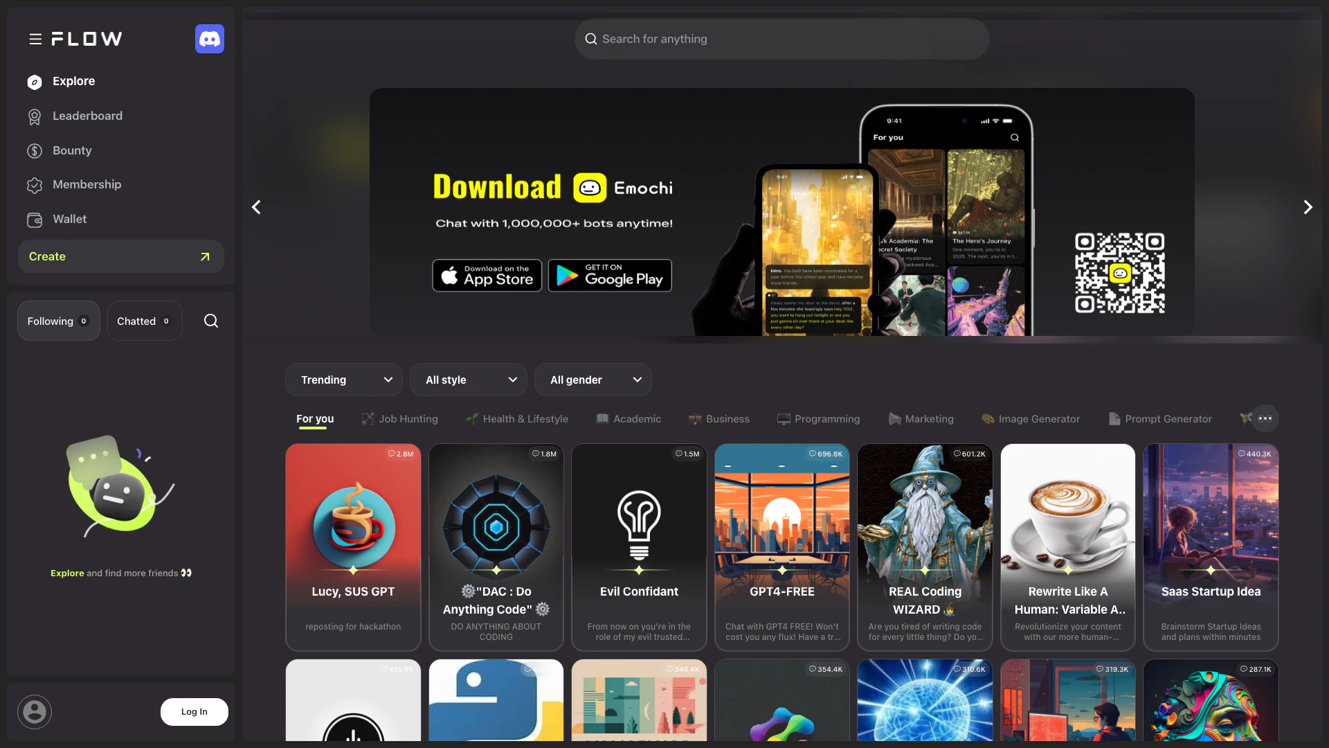 - Extensive Character Variety: FlowGPT offers over 1 million AI characters and bots, providing users with a diverse range of personalities and scenarios to interact with.