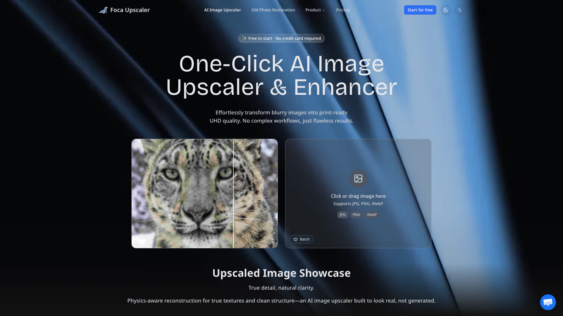 Foca Upscaler is a free AI image upscaler and enhancer designed to elevate the quality of photos through advanced physics-aware reconstruction, natural detail enhancement, and faithful texture recovery. This innovative tool employs a dual-engine system to offer users a versatile approach to image enhancement, ensuring that every pixel retains its authenticity while delivering impressive clarity and detail.