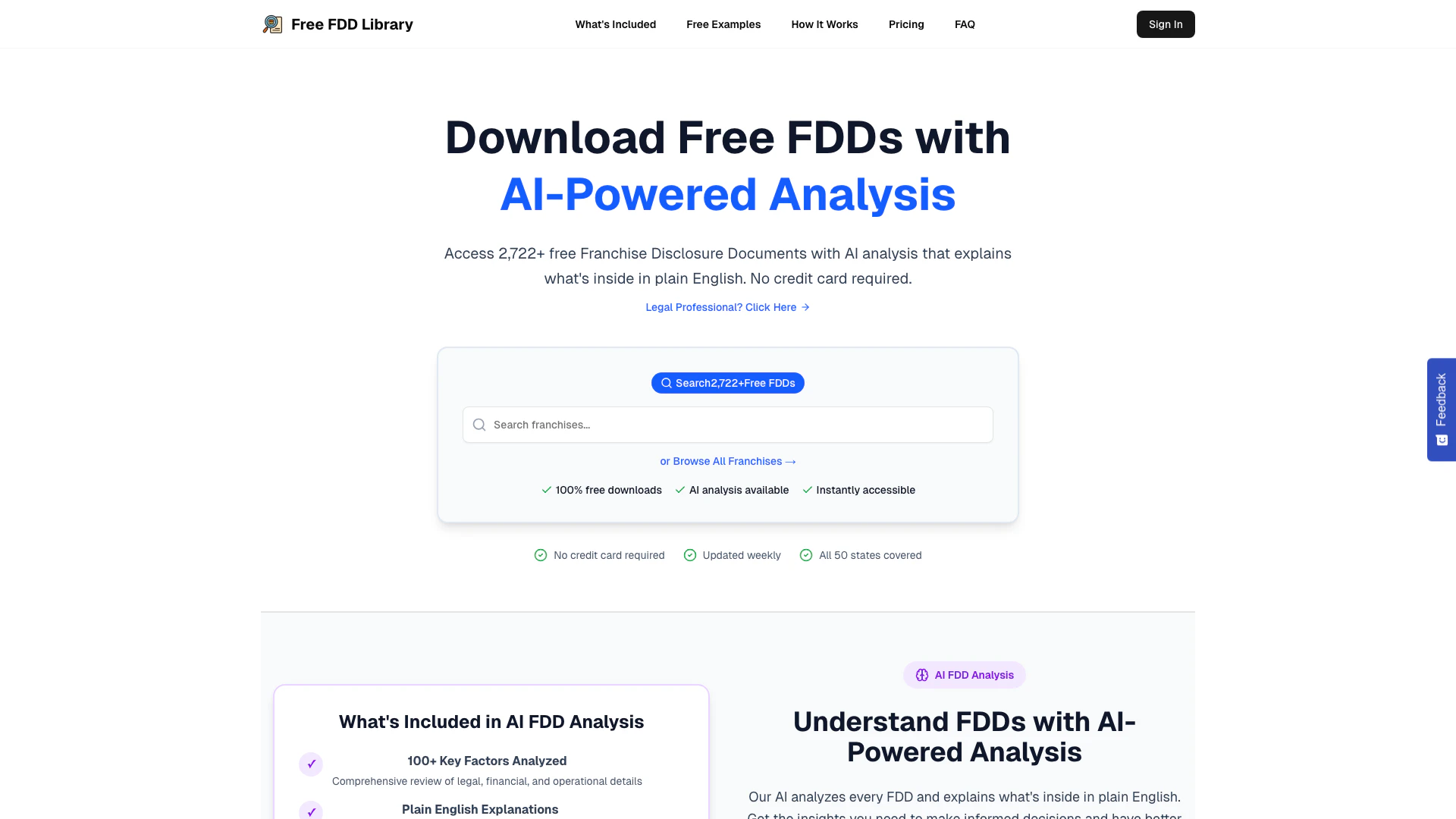 - AI-Powered Analysis: Users can opt for an AI analysis that reviews over 100 key factors in each FDD, providing insights in plain English.