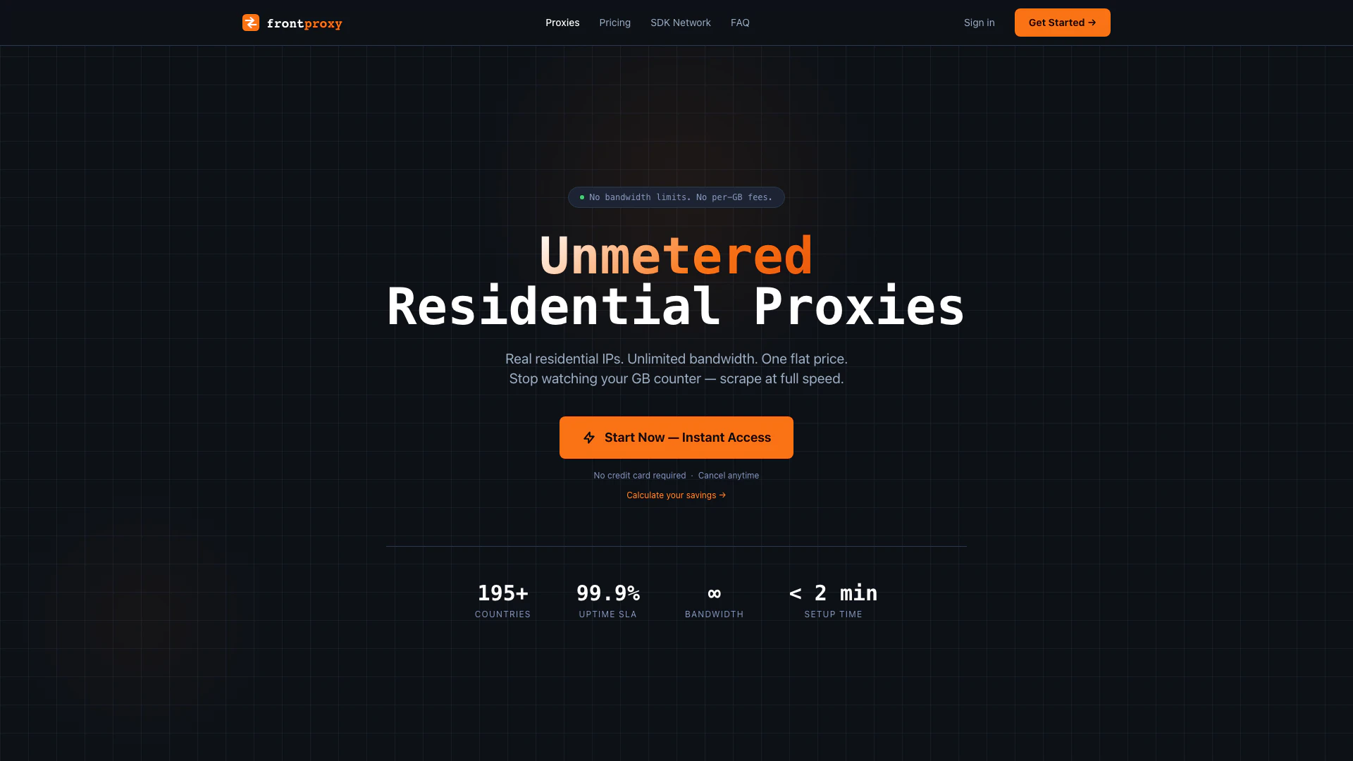 Frontproxy is a cutting-edge service that offers unmetered residential proxies with no bandwidth caps. Unlike traditional proxy services that charge per gigabyte, Frontproxy provides unlimited residential proxy traffic for a flat monthly price. With coverage in over 195 countries and a remarkable uptime of 99.9%, Frontproxy is designed for users who need reliable and extensive proxy solutions without the worry of additional fees for data usage.