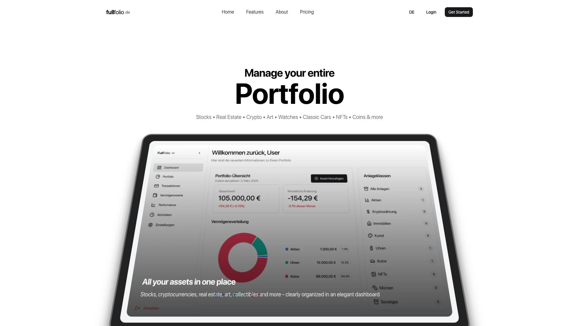 Fullfolio is an innovative portfolio management[1] tool designed to help users manage and track a diverse range of assets, including stocks, real estate, cryptocurrencies, art, watches, classic cars, NFTs, and coins. With its elegant and user-friendly dashboard, Fullfolio provides a comprehensive overview of your entire investment portfolio, enabling you to monitor performance, appreciate value, and optimize your financial situation. By consolidating various asset classes in one platform, Fullfolio aims to simplify the investment management process for both novice and experienced investors.