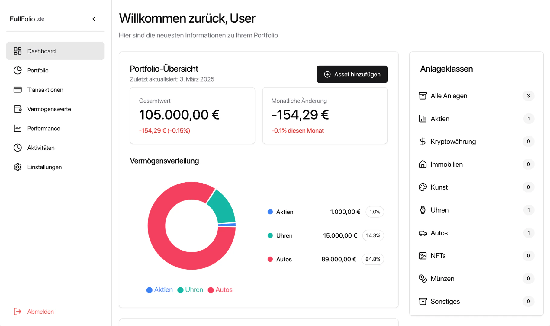 - Comprehensive Asset Tracking: Manage a wide variety of assets, including stocks, real estate, cryptocurrencies, art, watches, classic cars, NFTs, and coins.