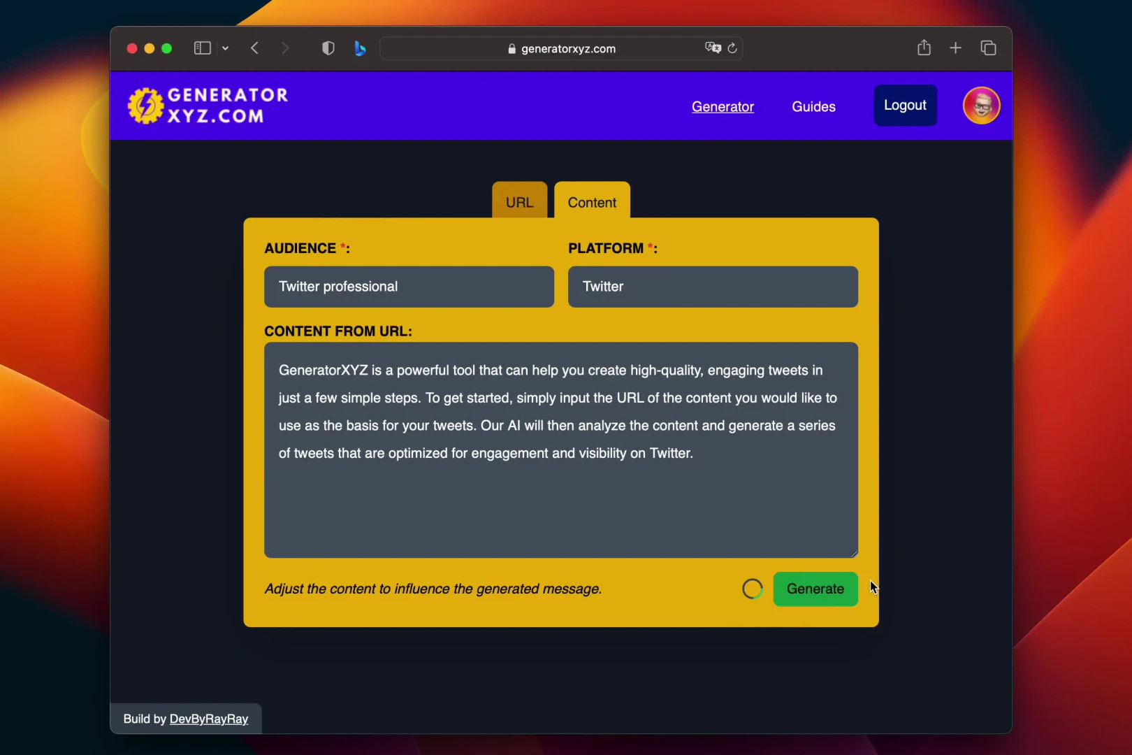 GeneratorXYZ is an AI content generator platform that helps content creators save time creating social media posts and summaries.