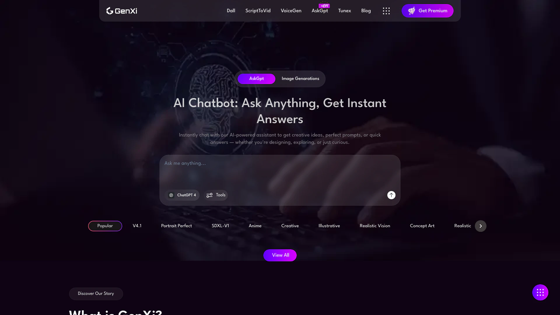 - AI-Powered Chatbot[5]: Get creative ideas and prompts instantly with Genxi's AI assistant.