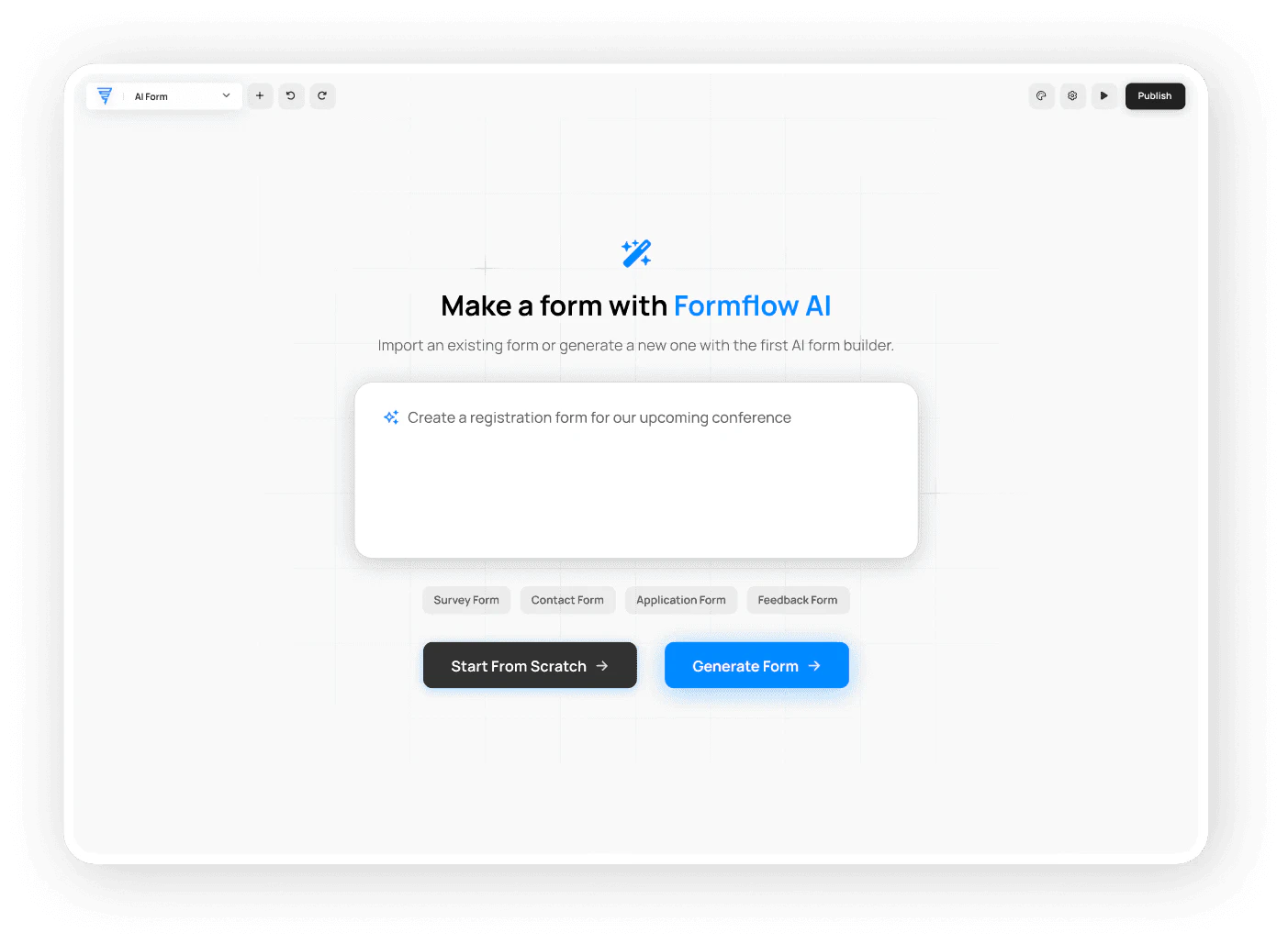 - AI Generates Your Form: Watch as Formflow Copilot uses AI to generate a fully functional form, complete with smart logic and professional styling, in just seconds.