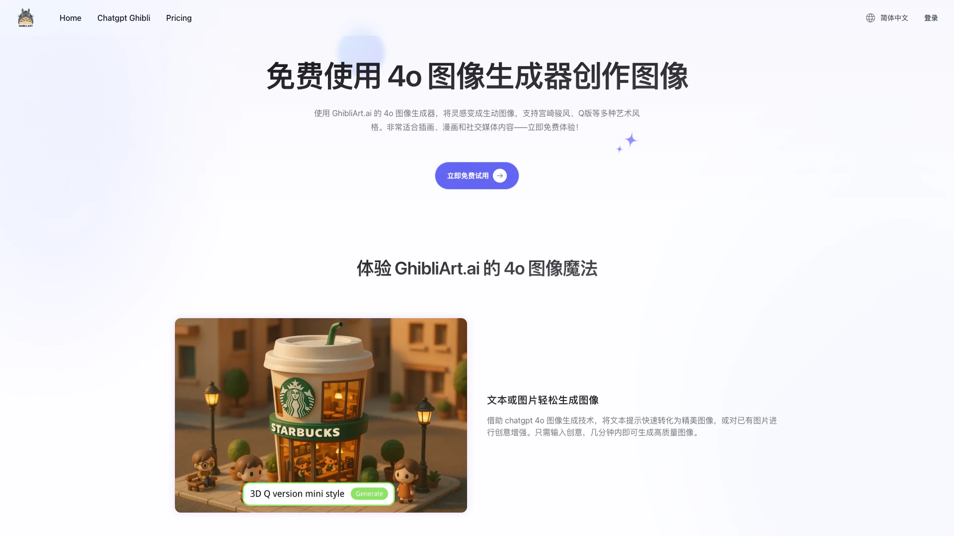 The ghibli style AI on GhibliArt.ai is incredible for my fan art. The 4o image generator creates studio-quality visuals in no time!