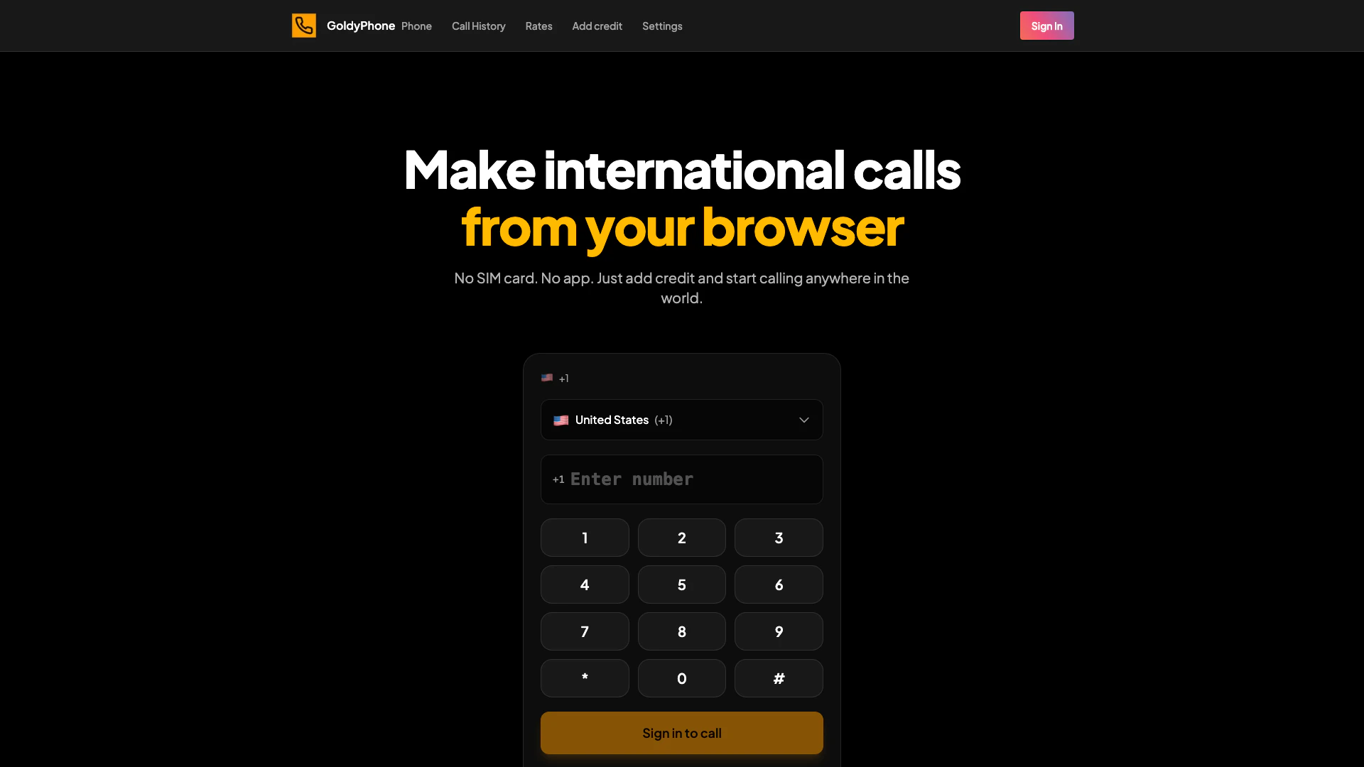 Goldyphone is an innovative online communication tool that allows users to make cheap international calls[1] directly from their browser. With a focus on providing transparent rates and a pay-as-you-go credit system, Goldyphone eliminates the need for SIM cards or mobile apps. Users can easily sign up using just their email, add credits, and start calling anywhere in the world without any hidden fees or subscriptions. This tool is designed for individuals looking for a cost-effective and straightforward solution for international communication.