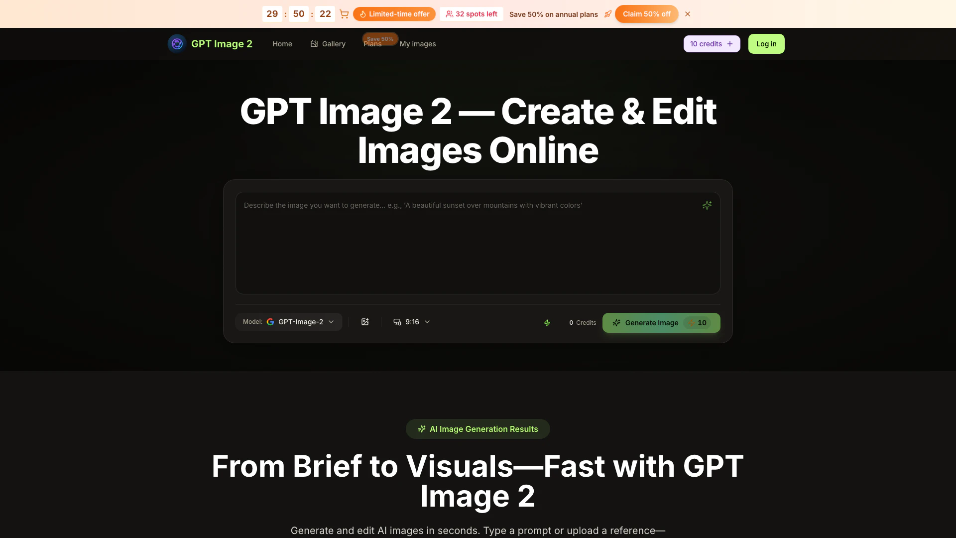 GPT Image 2 is an AI image website where you can generate images from text or edit existing photos with simple prompts. It’s powered by the GPT-Image-2 Model and built to be easy enough for non-designers.