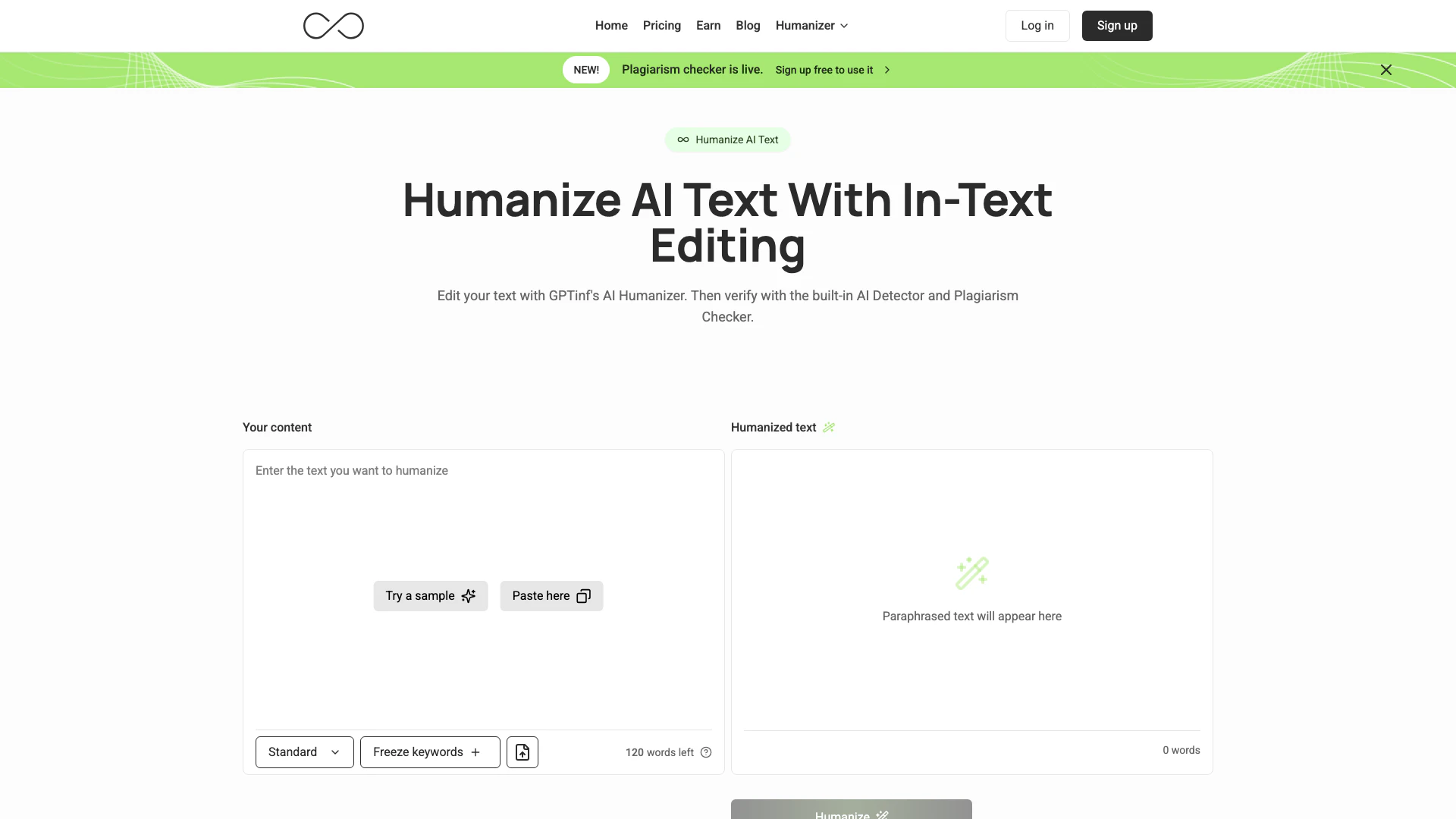 - Visit the Gptinf website and sign up for an account to access the AI Humanizer.
