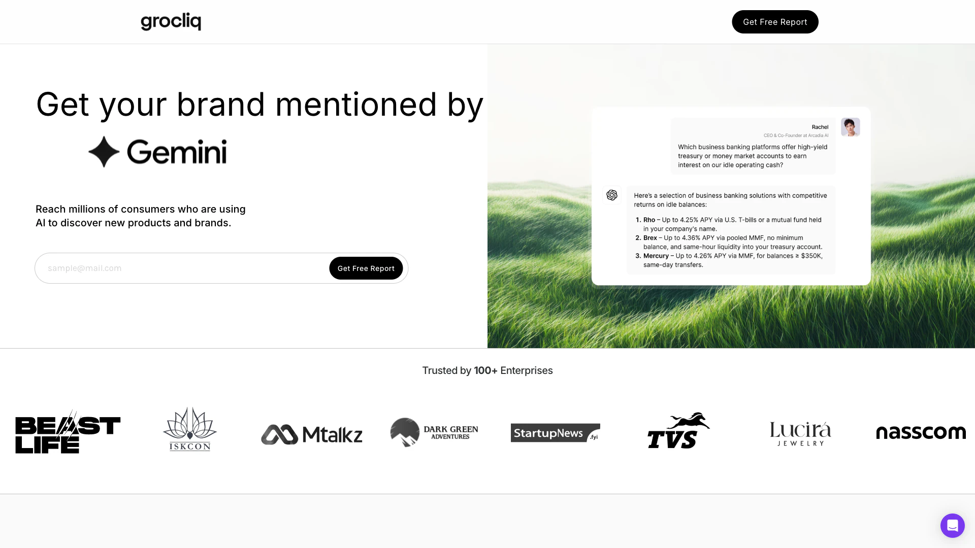 - Brand Visibility Enhancement: Use Grocliq to ensure your brand is cited in AI-generated responses to user queries.