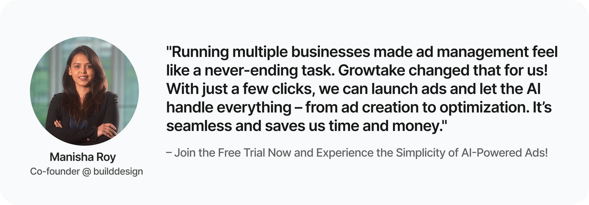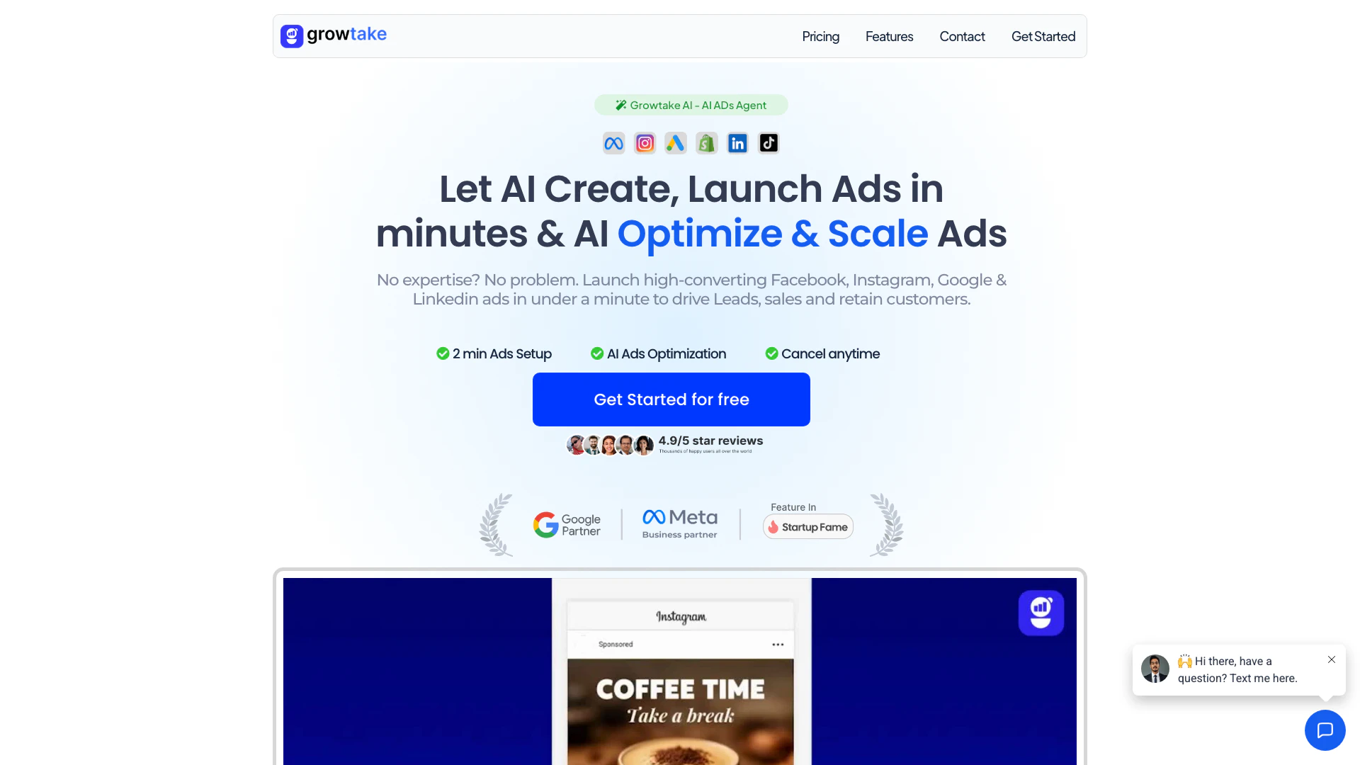 - Quick Ad Setup: Growtake allows users to create, launch, and optimize ads in under 5 minutes, making it ideal for those with limited time or expertise.
