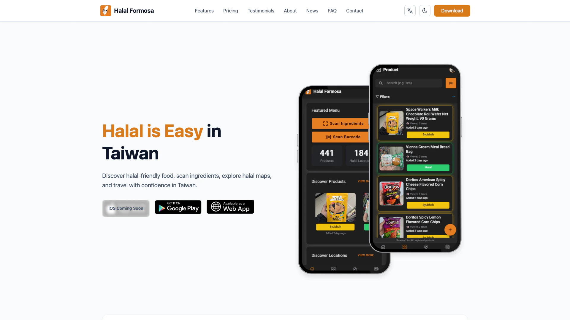 Halalformosa is a dedicated mobile application designed to assist Muslims in Taiwan in discovering halal food options, scanning ingredients for compliance with halal standards, and exploring halal-friendly locations. The app provides users with the confidence to travel and dine in Taiwan while adhering to their dietary requirements. By offering features such as ingredient analysis and halal maps, Halalformosa aims to create a stress-free experience for Muslims living in or visiting Taiwan.
