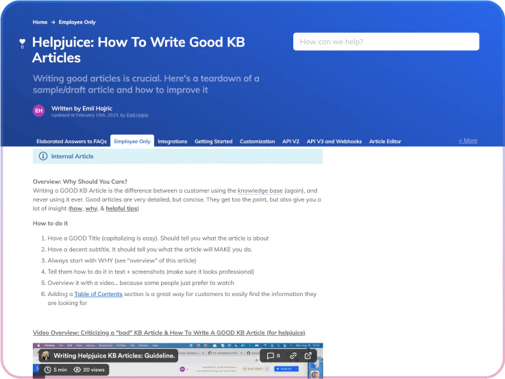 - Seamless Integrations: Connect Helpjuice with existing tools and platforms for enhanced functionality.