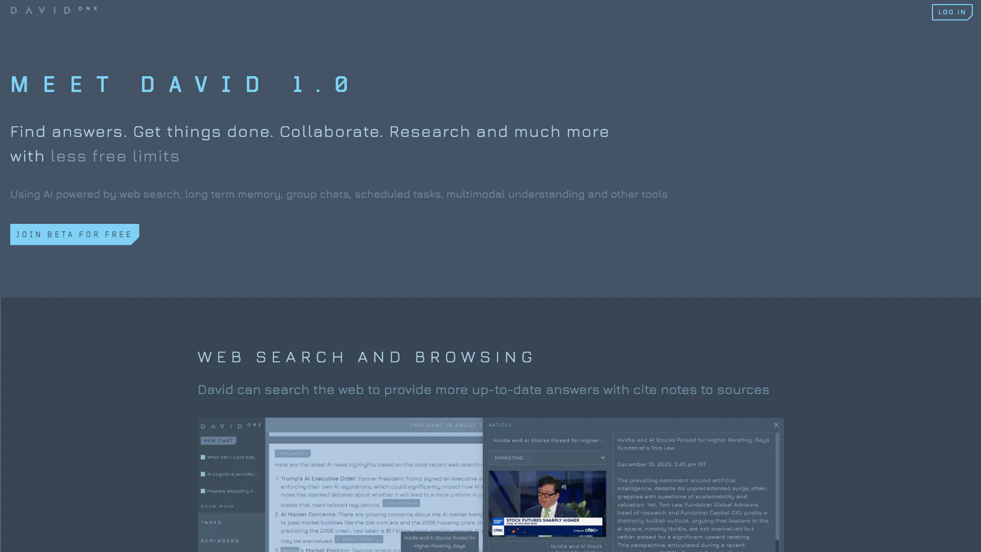 - Long-Term Memory: With brain-inspired memory, David remembers important context across chats, providing a personalized experience.