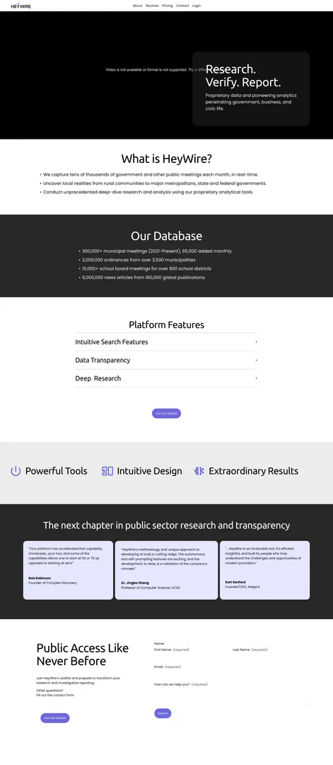 - Comprehensive Data Access: HeyWireAI provides access to over 300,000 municipal meetings and millions of news articles, enabling extensive research capabilities.