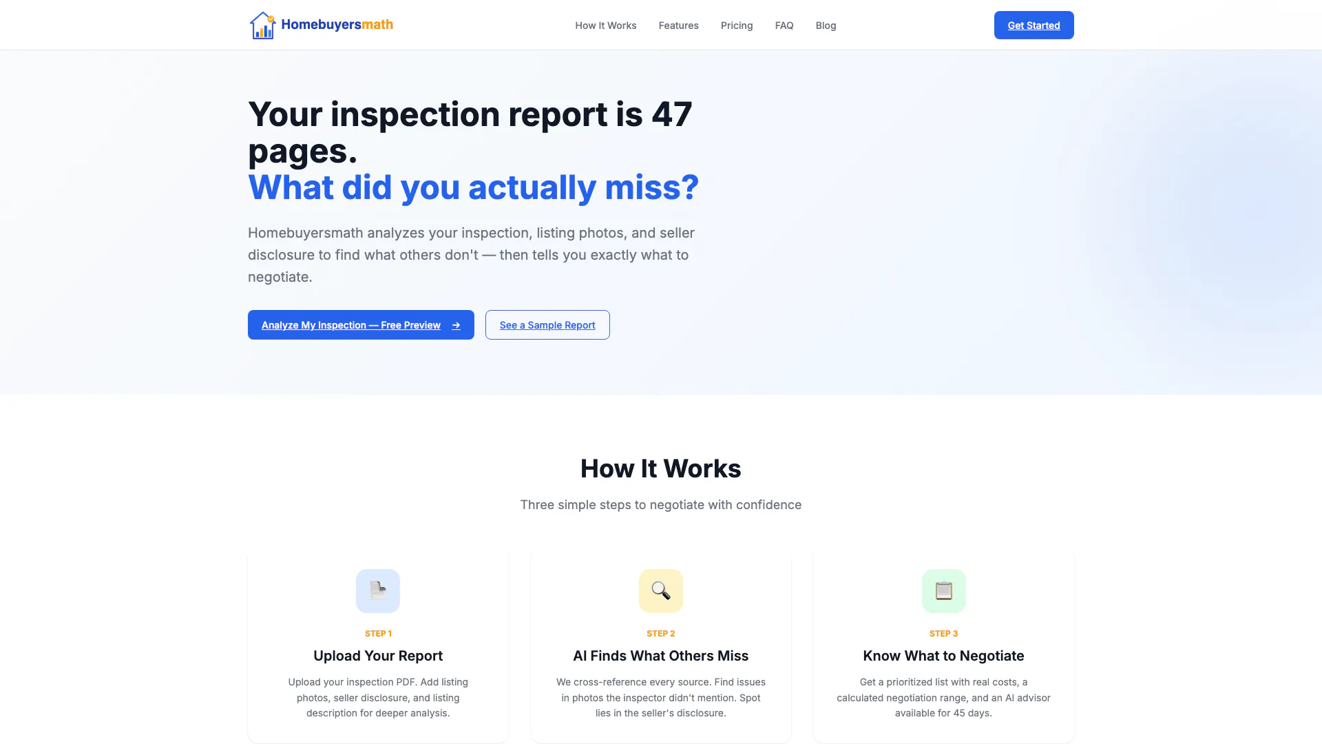 - First-time home buyers can use Homebuyersmath to analyze their home inspection reports and uncover hidden issues that may affect their purchasing decision.