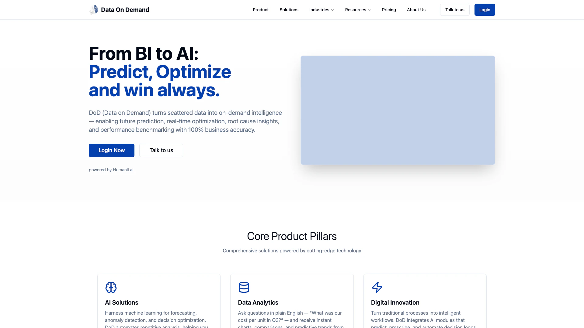 Humanliai, through its Data On Demand (DoD) platform, is an AI analytics workspace designed to transform scattered data into actionable intelligence. This powerful tool empowers organizations to predict future trends, optimize operations in real-time, and gain deep insights into performance metrics, all while ensuring 100% business accuracy. By integrating advanced machine learning capabilities, Humanliai enables users to automate repetitive analyses, allowing them to focus on deriving insights rather than managing spreadsheets. The platform is tailored for businesses looking to enhance decision-making processes with data-driven insights.