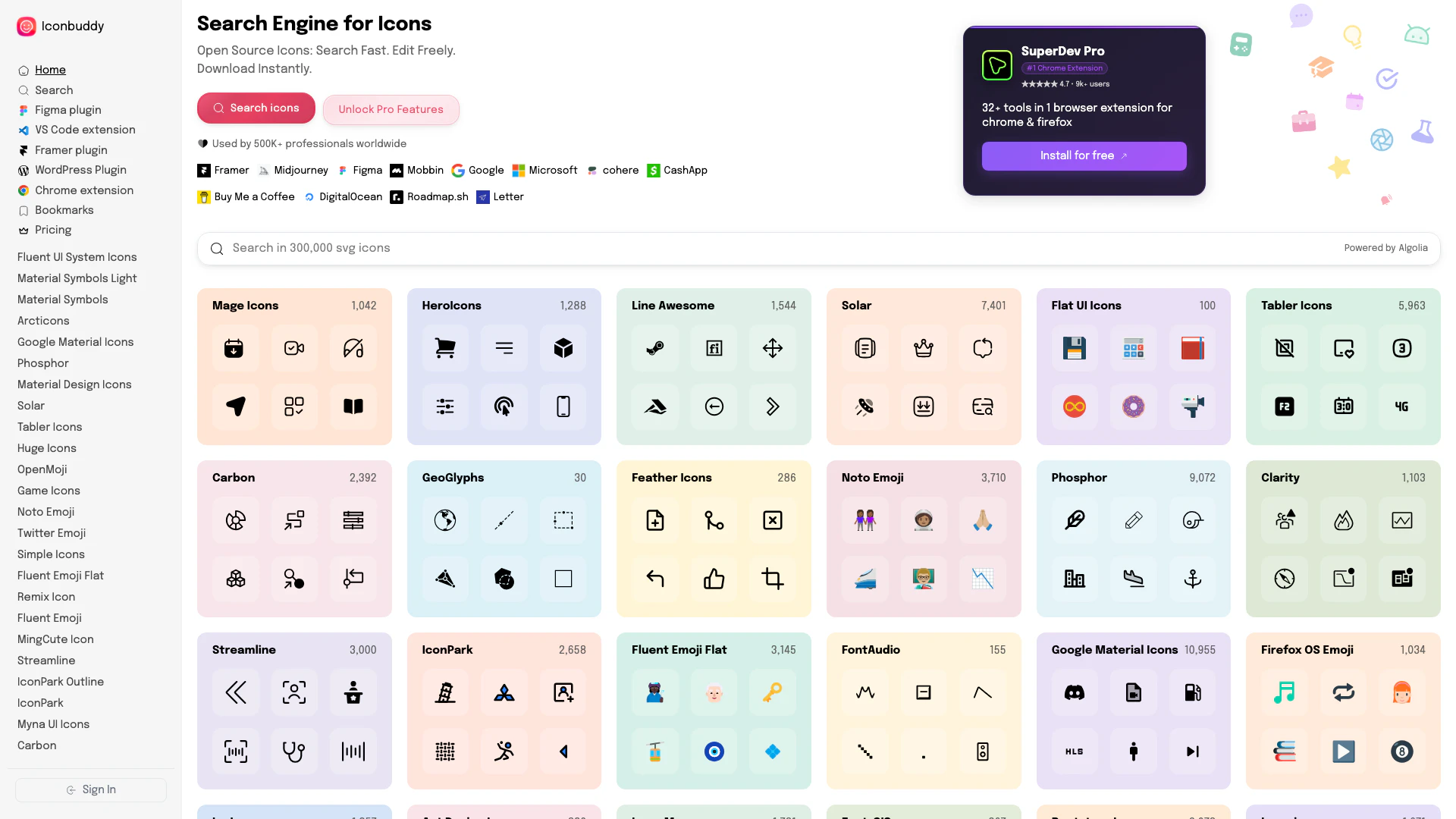 - Extensive Icon Library: Access over 300,000 SVG icons from multiple open source libraries, providing a wide variety of choices for users.