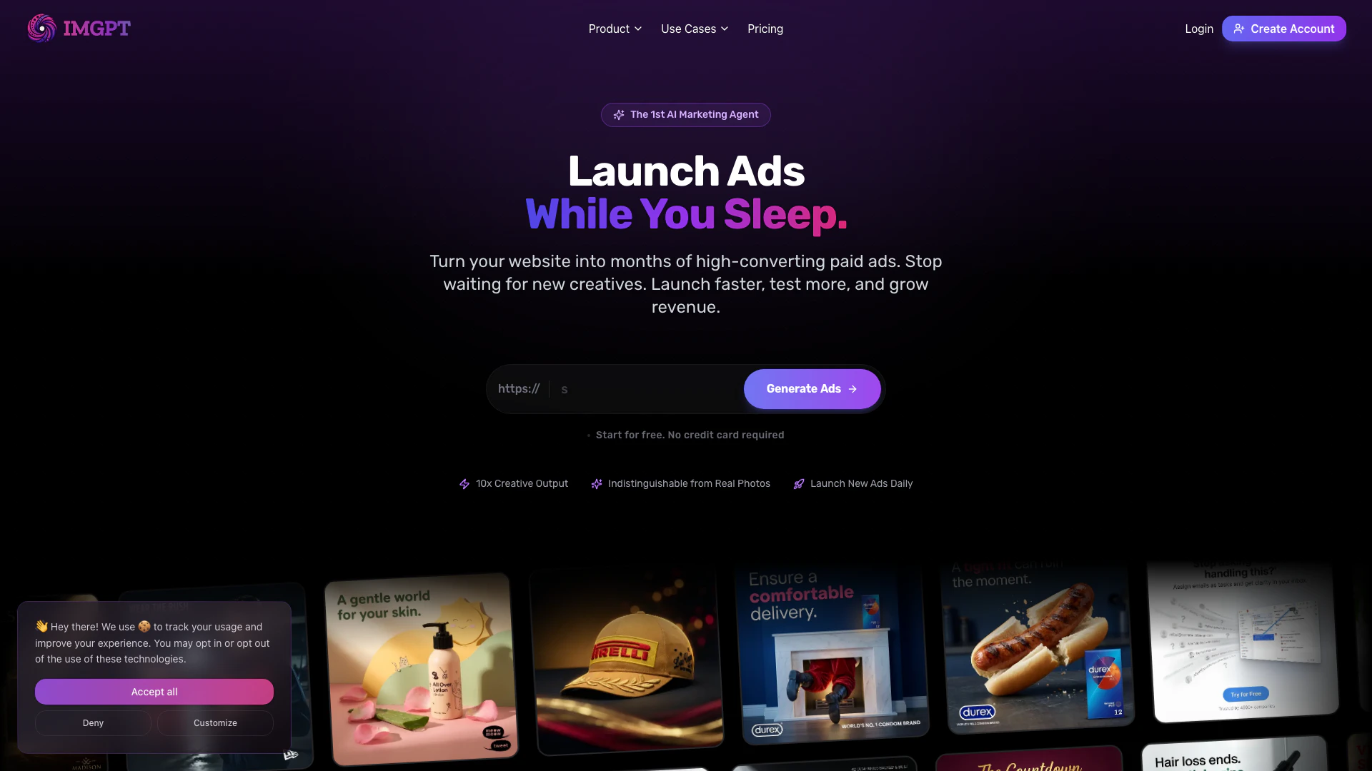 IMGPT uses AI-powered technology to analyze your website and generate authentic creatives that drive actual conversions. It creates campaign-ready ads in minutes by extracting brand intelligence and utilizing various tools for ad creation.