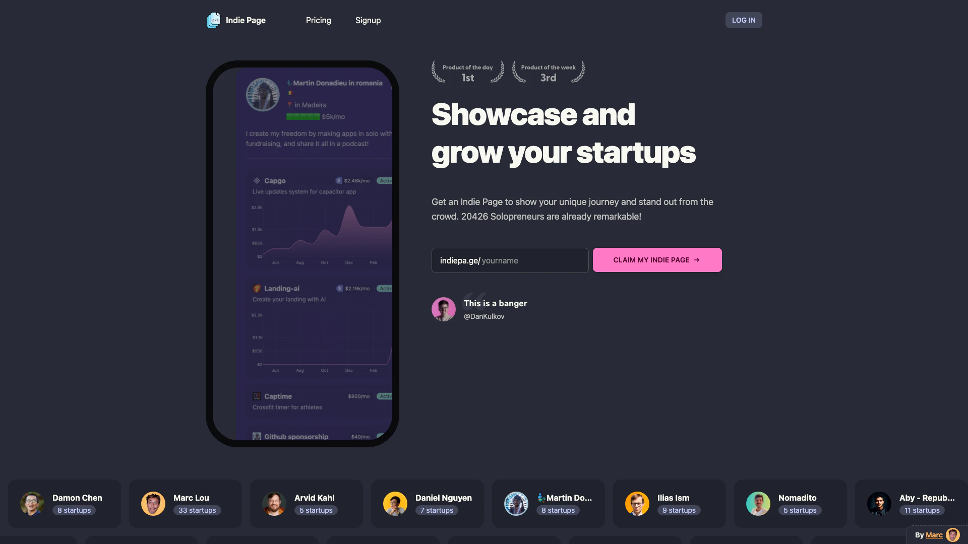 - Customizable Indie Page: Create a personalized page to showcase your startups and projects.