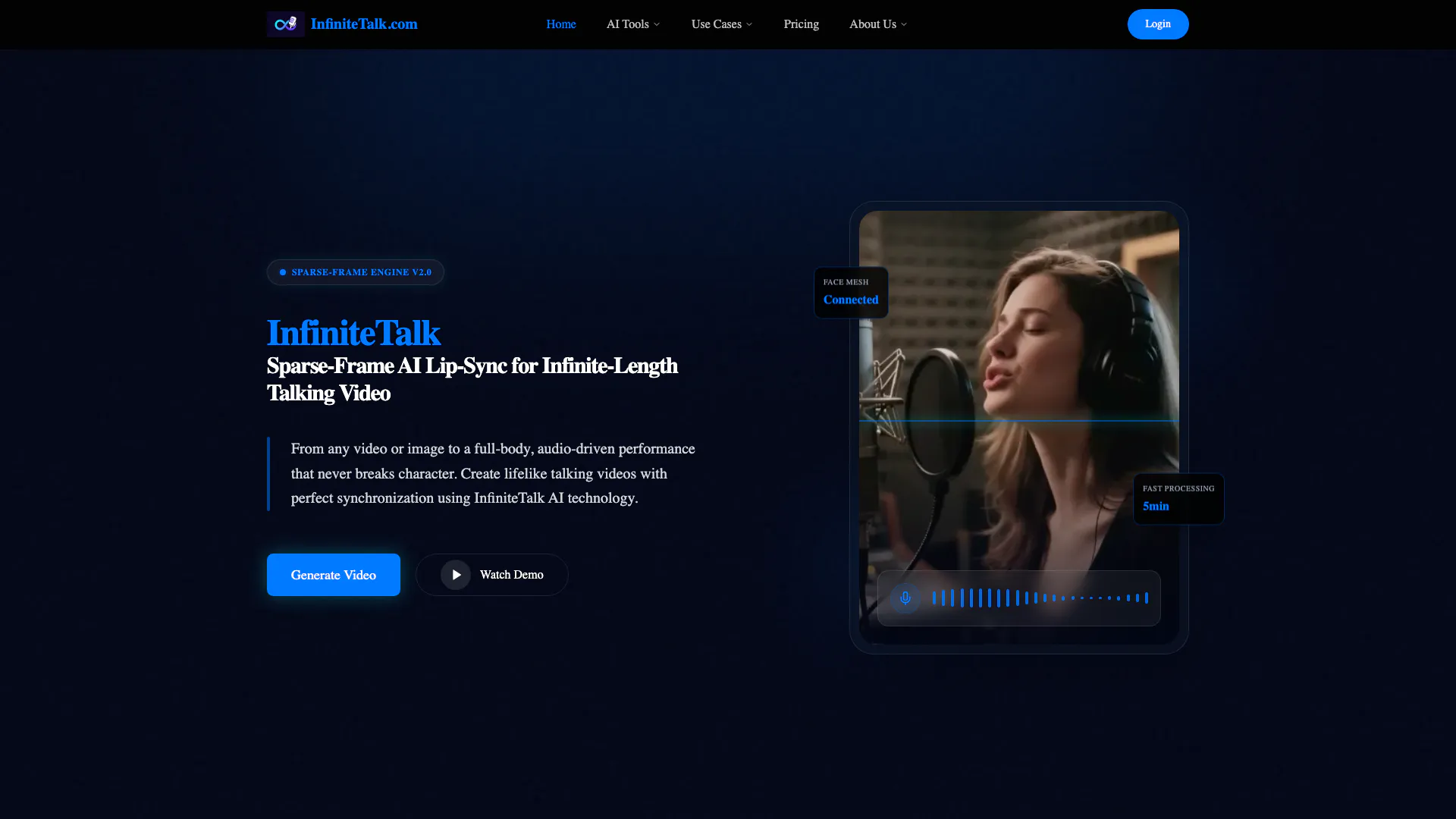 - AI Synthesis Process: The Sparse-Frame engine analyzes audio waveforms, mapping them to the avatar's facial structure for natural movements.