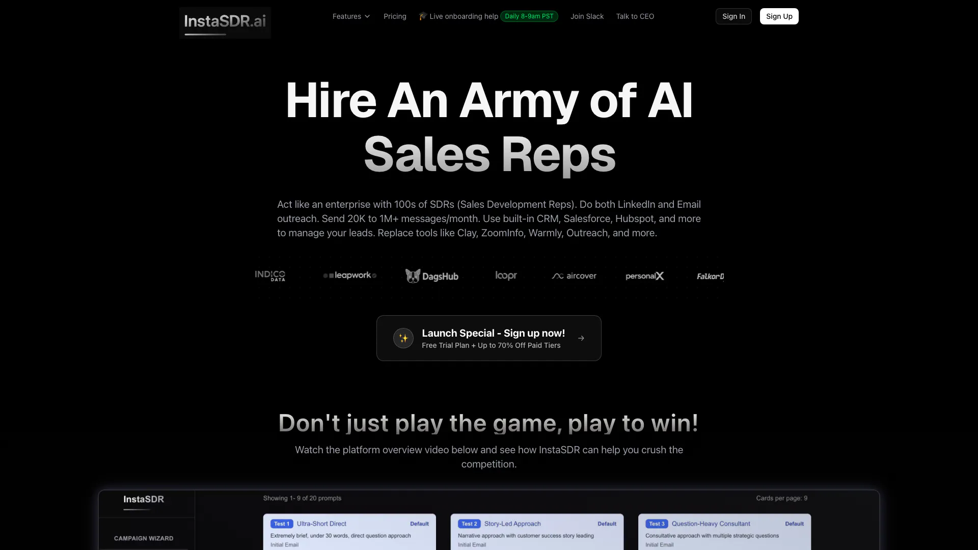 - Personalized Video Emails at Scale: InstaSDR allows users to create personalized video emails at scale, significantly increasing engagement and response rates by 3x-8x.