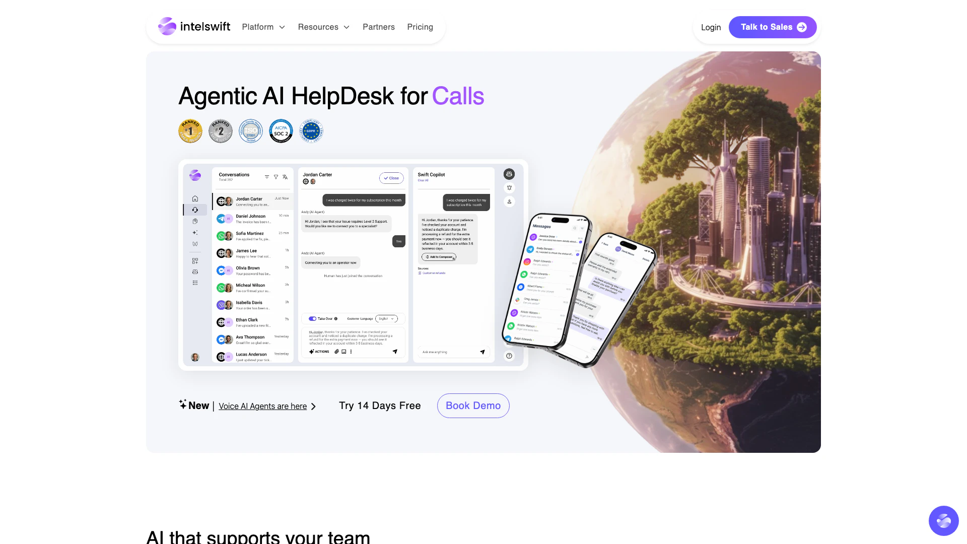 Use AI Agents powered by Intelswift with your current helpdesk including Zendesk, Salesforce, and more. Usage Based Pricing: $0.25 per Voice AI minute, $0.1 per Chat AI conversation.
