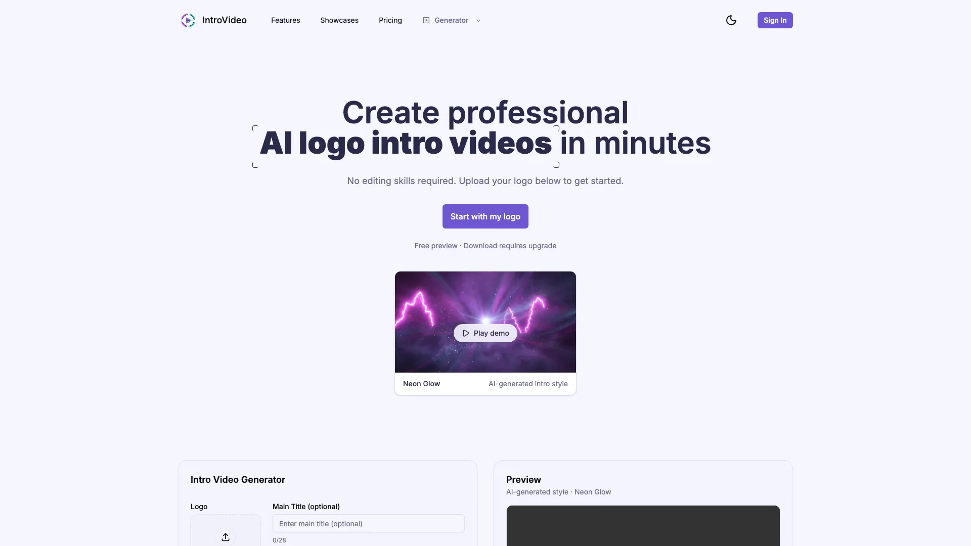 To create a logo intro video online for free, simply upload your logo on the IntroVideo platform, select your preferred style, and generate a preview. Note that downloading the video may require an upgrade.
