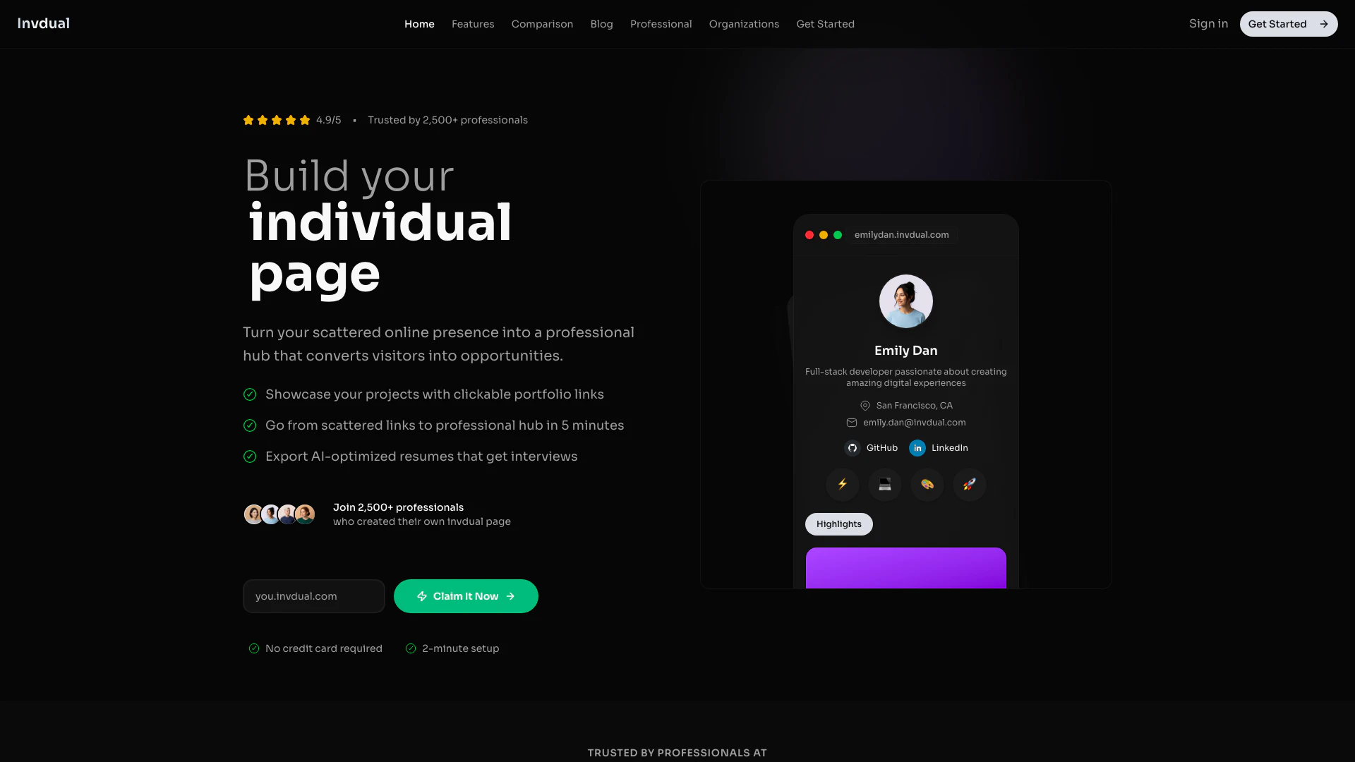Invdual is ideal for professionals across various fields, including designers, developers, and marketers, who seek to enhance their online presence and connect with potential clients or employers. It caters to individuals looking to consolidate their digital identities into a single, professional platform that showcases their work and expertise. Additionally, it is beneficial for freelancers and job seekers aiming to present their portfolios effectively and improve their chances of being noticed in competitive job markets.