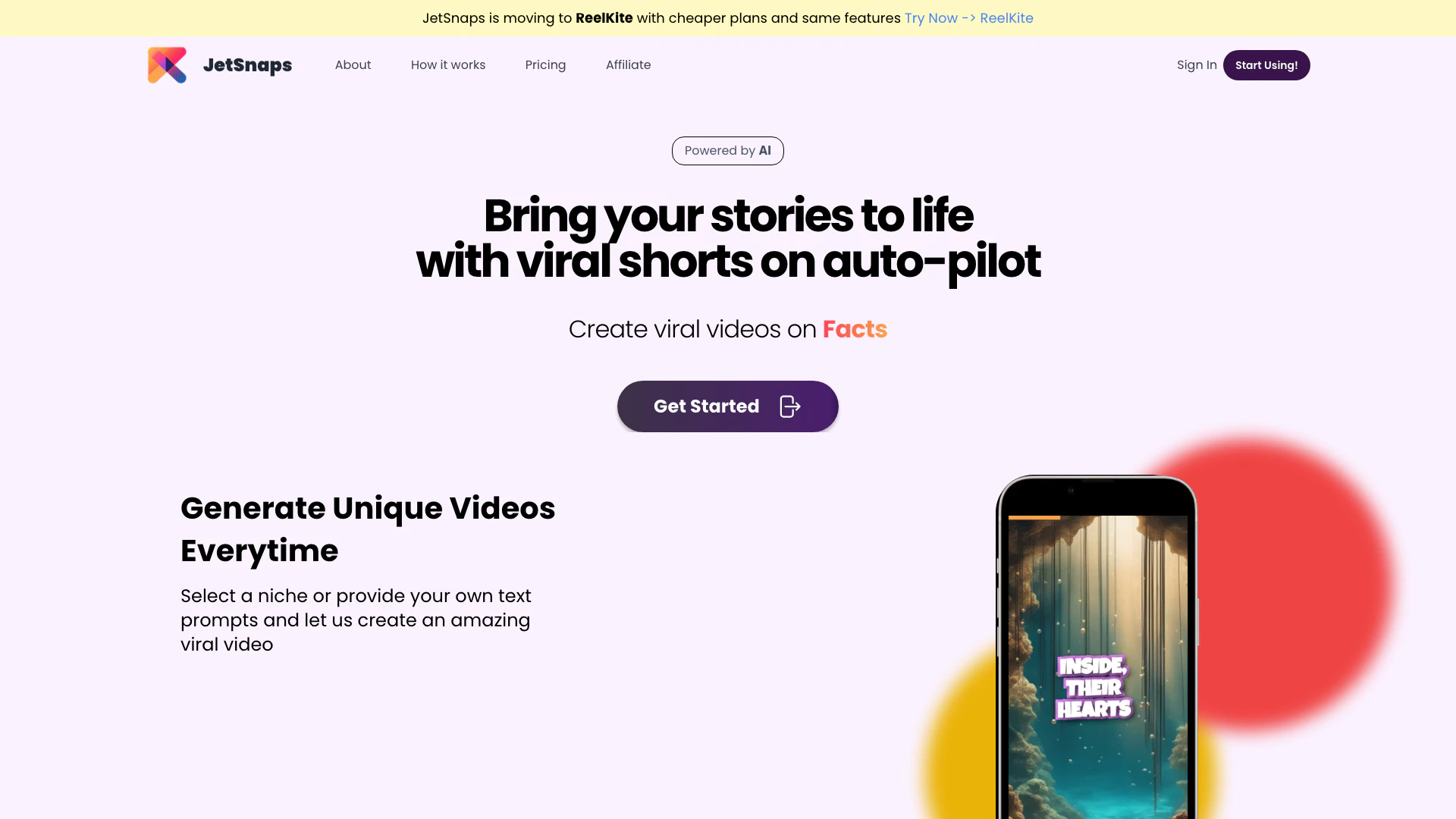 - AI-Powered Video Generation: Jetsnaps utilizes AI to create unique and engaging videos, allowing users to generate content effortlessly.