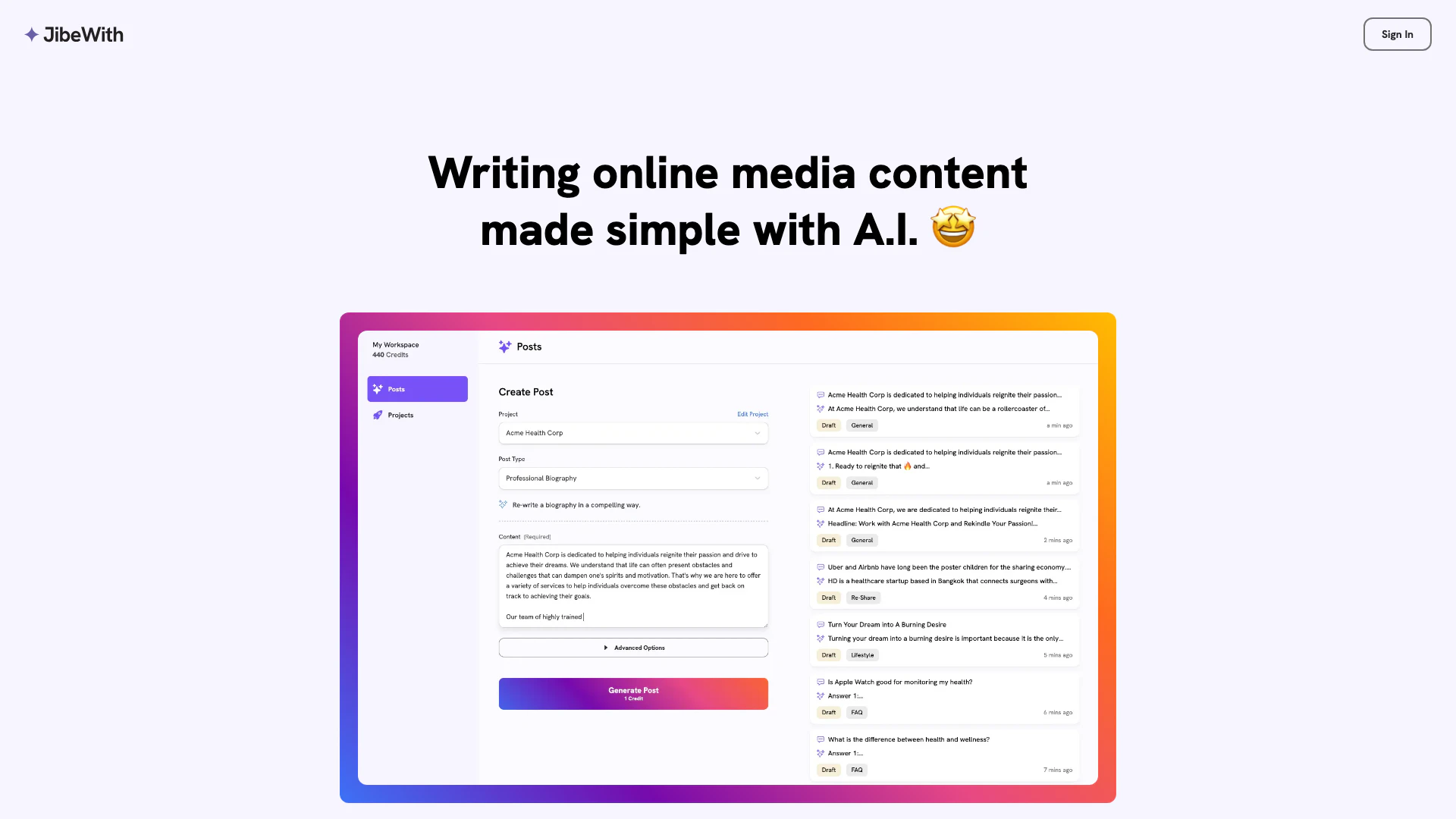 - AI-Generated Content: Jibewith utilizes AI to generate content, making it easier for users to create engaging media without needing extensive writing skills.