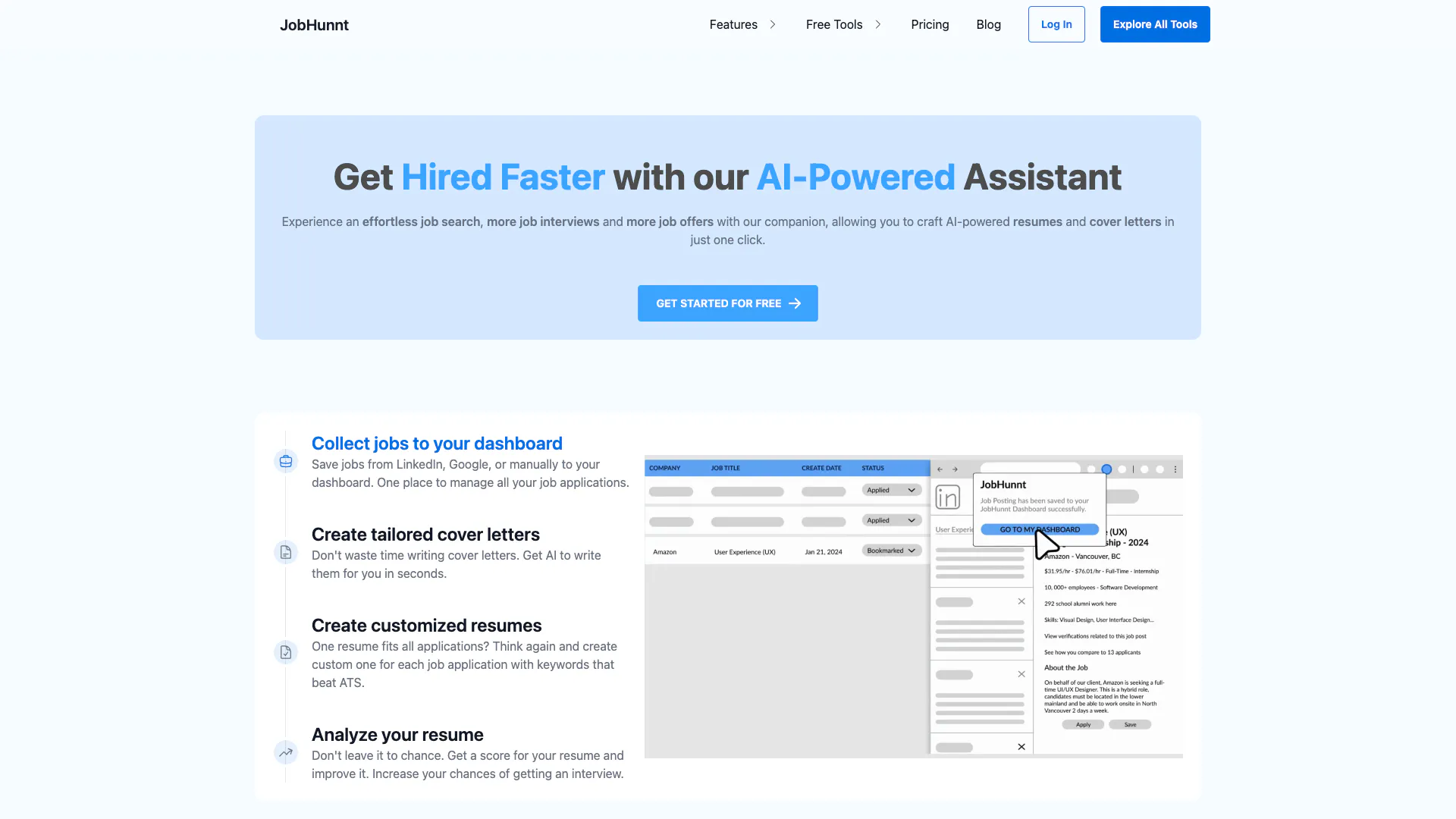 Jobhunnt is an AI-powered job application assistant designed to help job seekers create personalized resumes and cover letters tailored to each job application, thereby increasing their chances of getting hired.