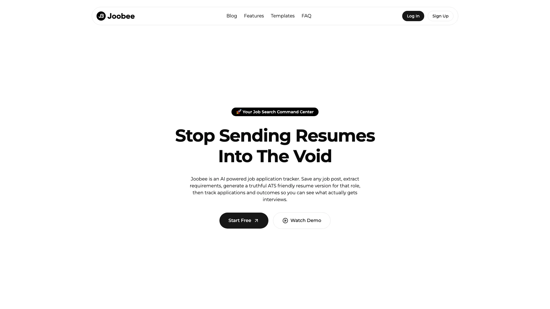 Joobee is an AI-powered[1] application tracker[2] designed to streamline the job application process. It allows users to capture job offers through a browser extension[3], organize their job application pipeline, and generate tailored, ATS-ready resumes—all within a single, user-friendly workspace. By leveraging AI technology, Joobee helps job seekers track applications, analyze outcomes, and improve their chances of securing interviews.
