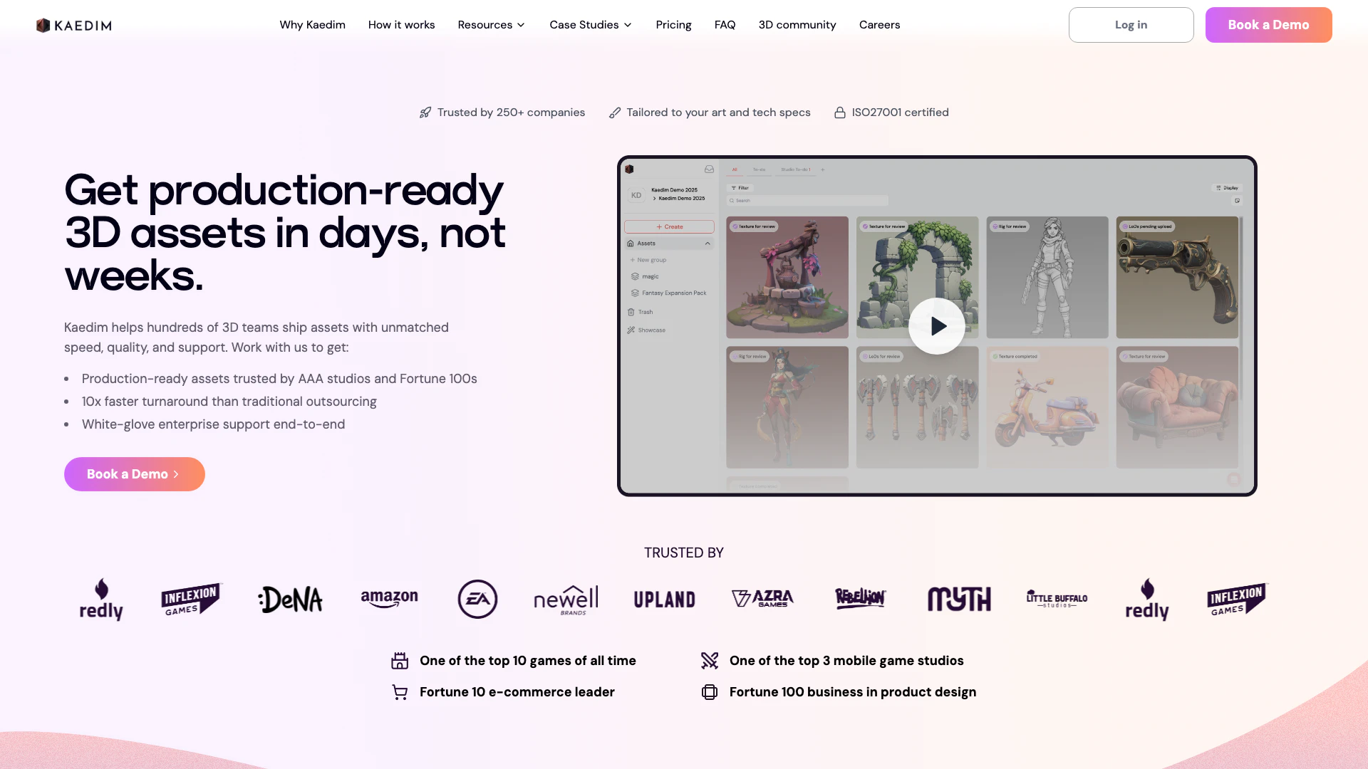 - Fast Asset Creation: Kaedim delivers production-ready 3D assets up to 10 times faster than traditional outsourcing methods, significantly accelerating the 3D game art production process.