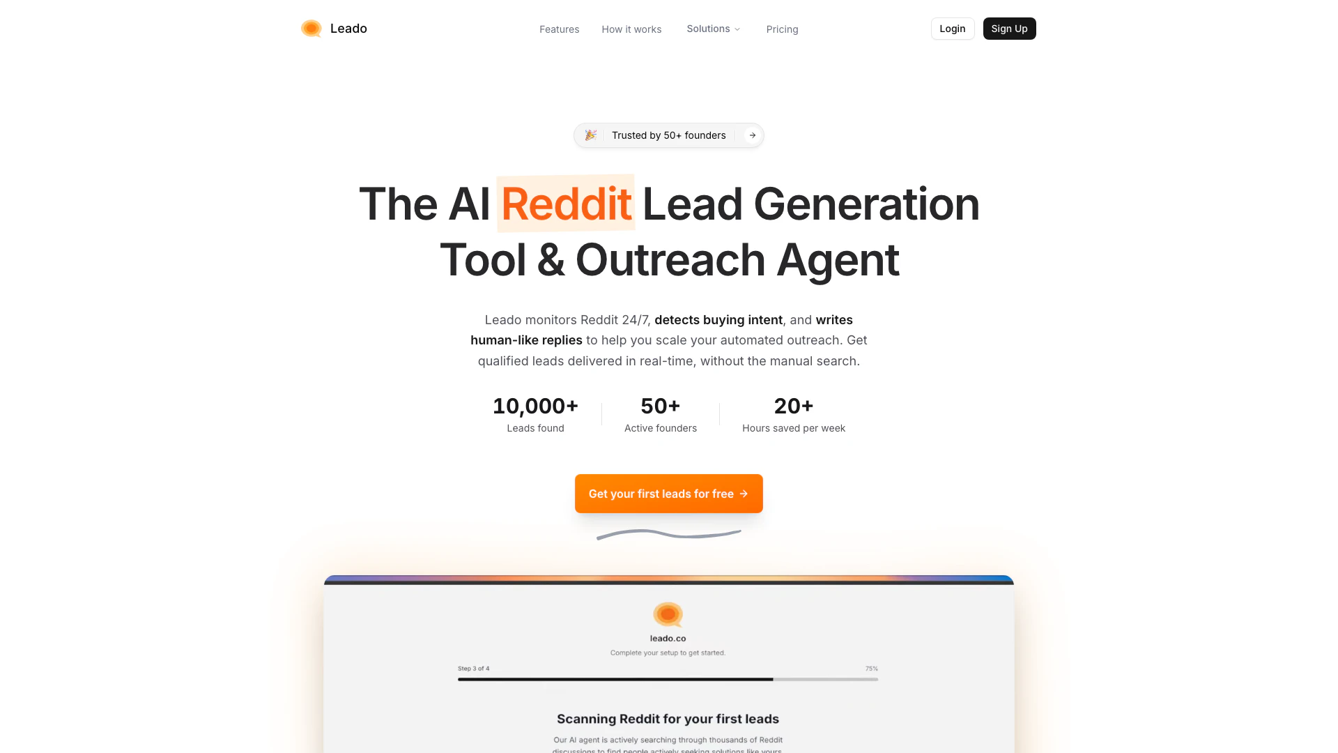 - Automated Lead Generation: Leado automates the process of lead generation by continuously monitoring Reddit for high-intent buying signals, saving users significant time and effort.
