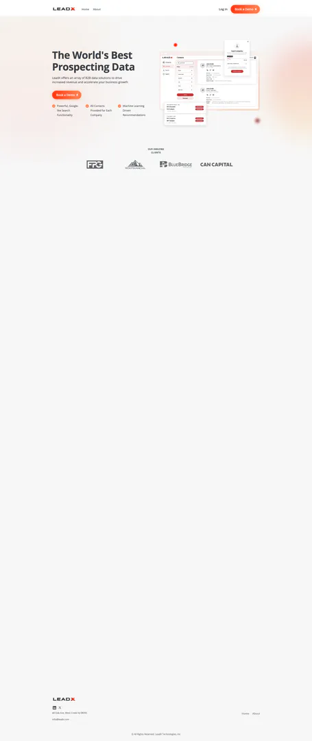 LeadX is a powerful B2B prospecting[1] tool designed to enhance business growth by providing comprehensive data solutions. It offers a vast database with real-time company information for over 11 million businesses, enabling users to find ideal customers effortlessly. With its advanced search functionality and machine learning[2]-driven recommendations, LeadX empowers sales teams to optimize their prospecting efforts and drive revenue effectively.