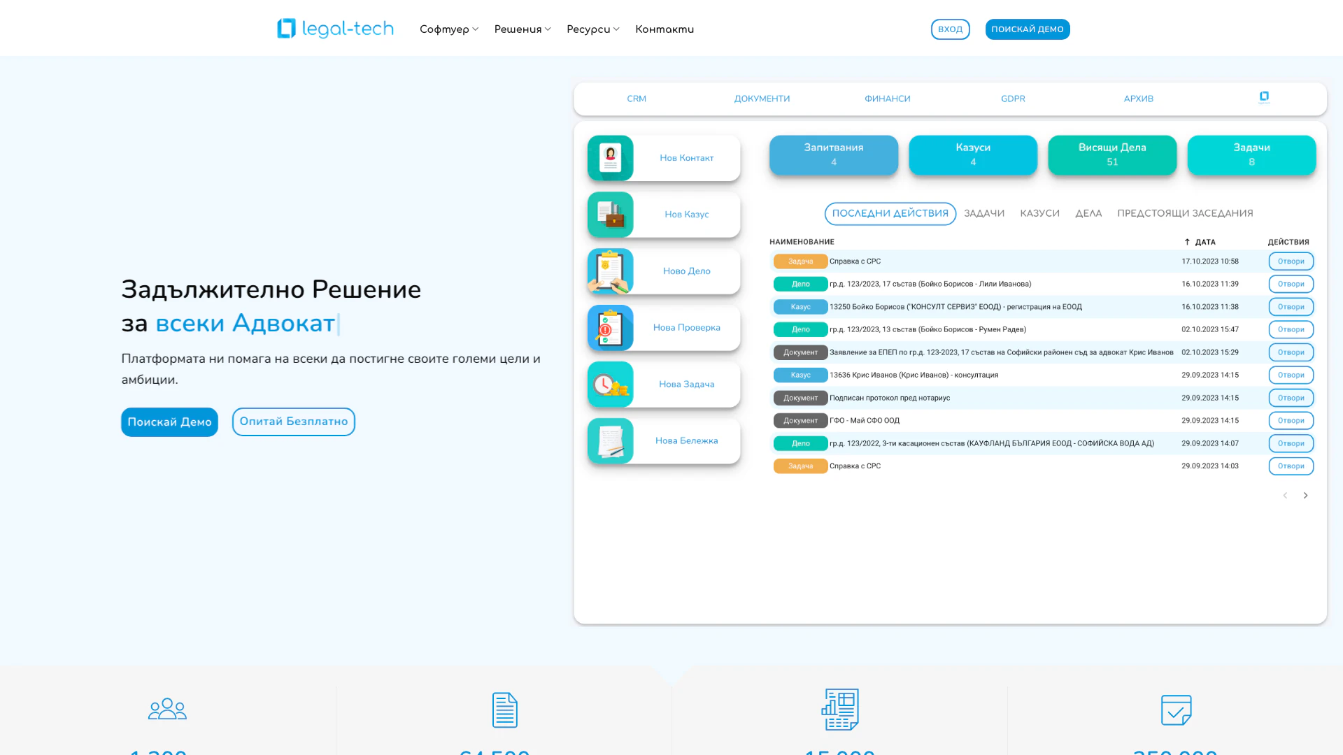 Legal Tech is a cloud platform for managing law firms and legal departments. Our solution helps all lawyers and legal professionals automate much of their daily tasks, gain more clients, and provide better service.