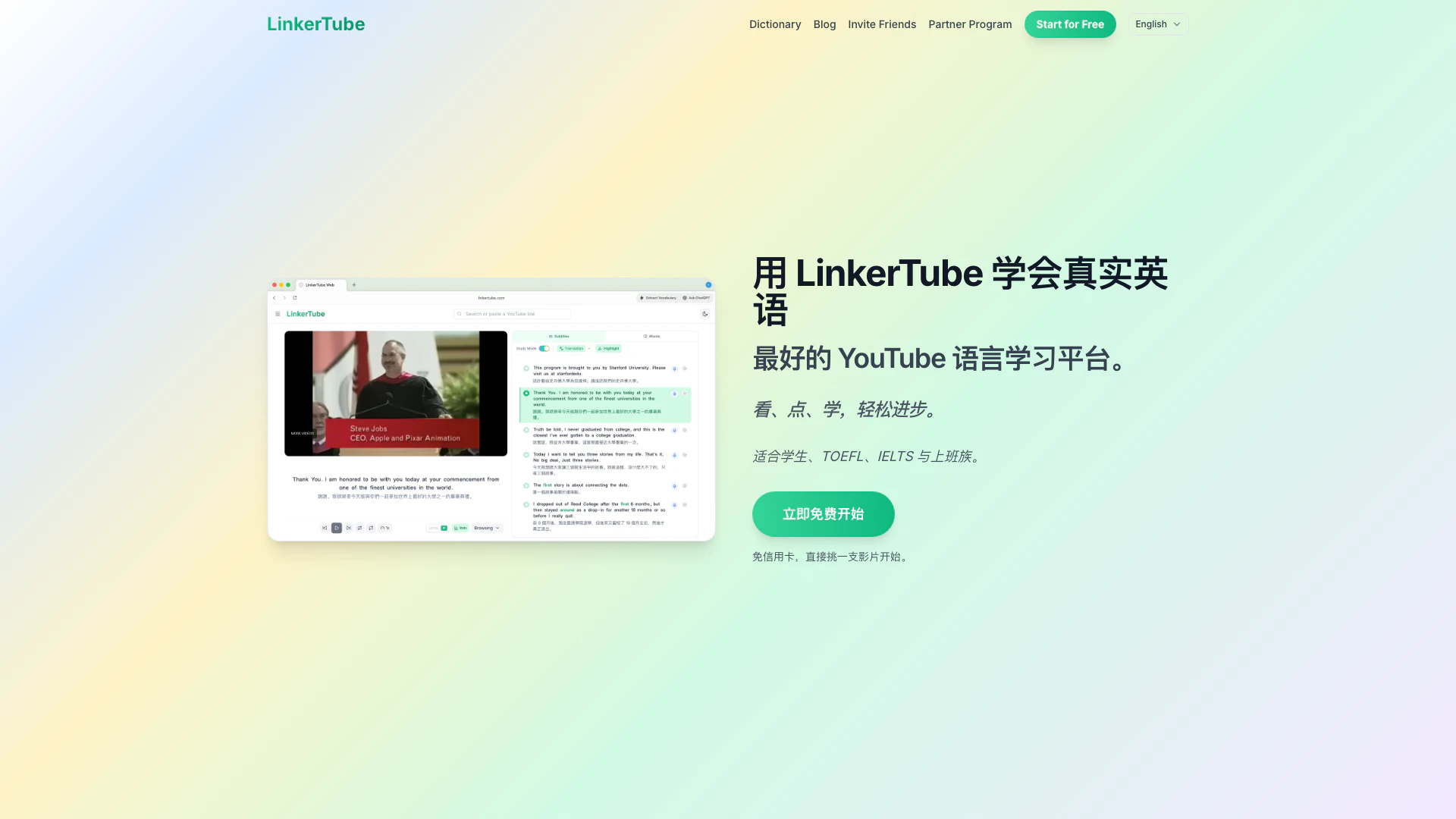 LinkerTube is an innovative language-learning[1] platform designed to help users learn real-world English through engaging YouTube videos[2]. It combines structured learning with authentic content, allowing learners to immerse themselves in the language without the pressure of traditional study methods. With its unique micro-immersion system, LinkerTube enables users to learn in just 10 minutes a day, making it perfect for busy individuals who want to improve their English skills in a practical and enjoyable way.