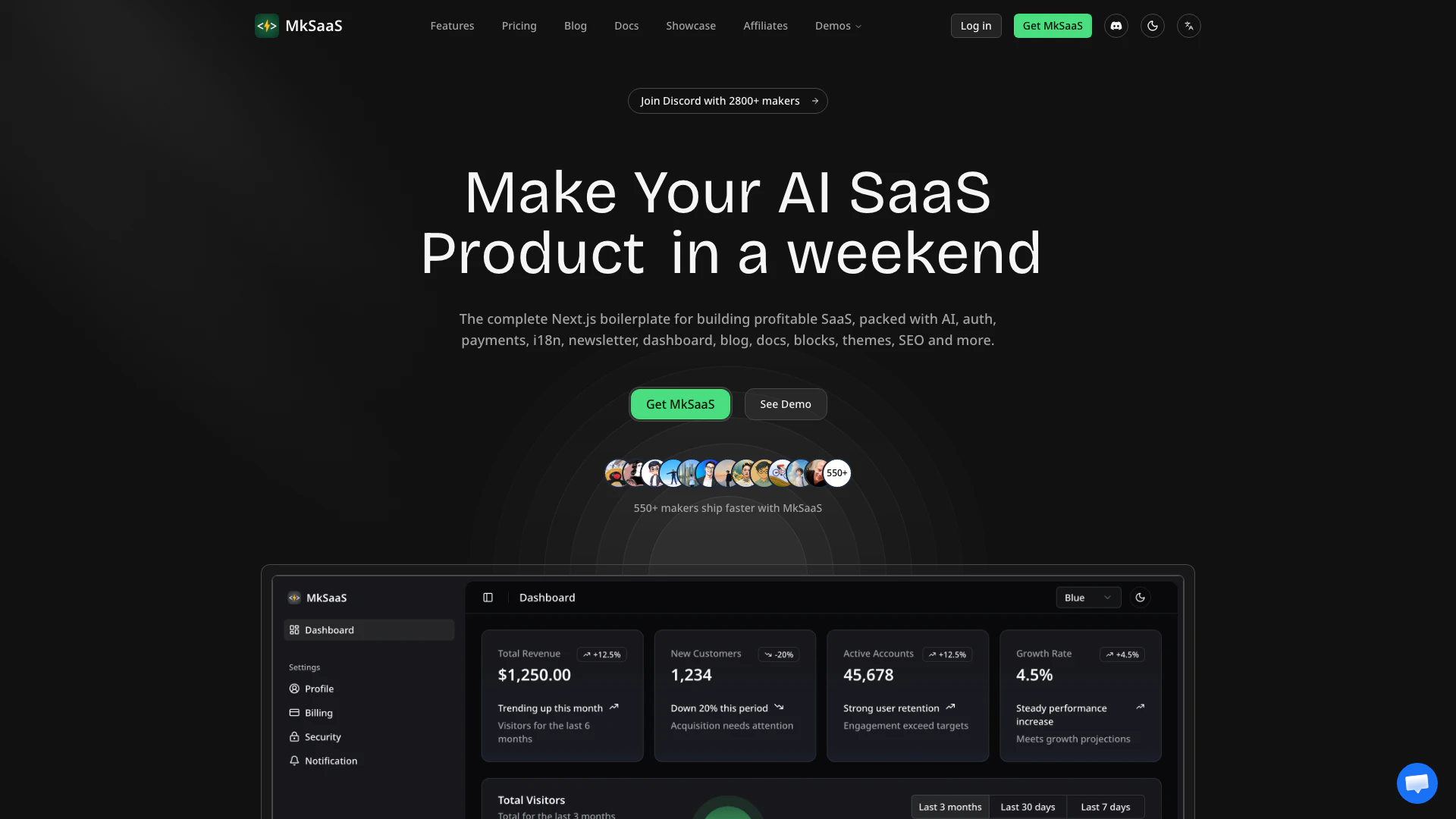MkSaaS is a comprehensive Next.js[1] boilerplate[2] designed specifically for building profitable Software as a Service (SaaS) applications. It is packed with essential features such as AI integration[4], authentication, payment processing, internationalization (i18n), a newsletter system, a customizable dashboard, blog, documentation, reusable blocks, themes, and SEO capabilities. This tool simplifies the development process, allowing developers to focus on creating their product without the hassle of starting from scratch.
