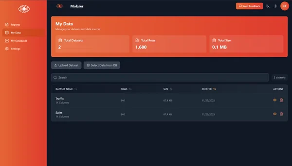 - AI-Powered Data Analytics: Mobser utilizes artificial intelligence to automatically analyze data, extract key metrics, and identify trends, making data insights accessible without coding.