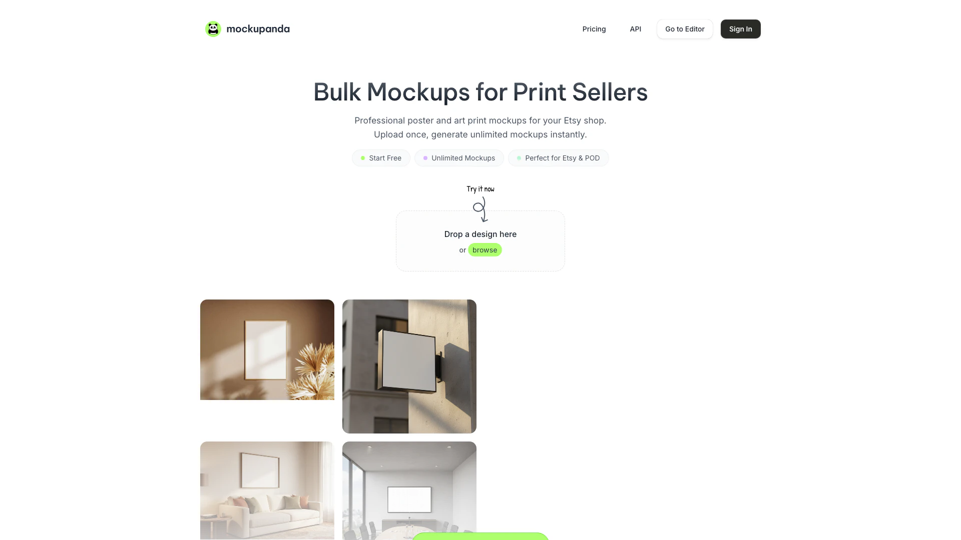 Mockupanda is an innovative online tool designed to create stunning print mockups[2] in seconds. Specifically tailored for Etsy sellers[3] and print-on-demand (POD) shops, it allows users to generate professional-quality poster, art print, and frame mockups in bulk. The platform is built to streamline the mockup creation process, enabling users to upload their designs once and produce unlimited mockups instantly. With a focus on speed and quality, Mockupanda helps users enhance their product images, which can lead to higher conversion rates and increased sales.