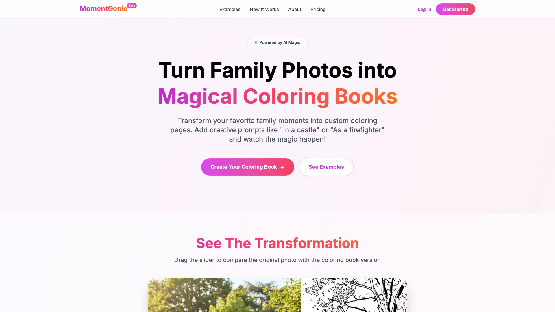Momentgenie is an innovative AI-powered tool designed to transform your family photos into magical coloring books. By simply uploading a family photo and adding creative prompts, users can watch as the AI generates beautiful, personalized coloring pages that children will love. This tool not only captures cherished family moments but also provides a fun and engaging activity for kids, making it an excellent resource for families looking to combine creativity with nostalgia.