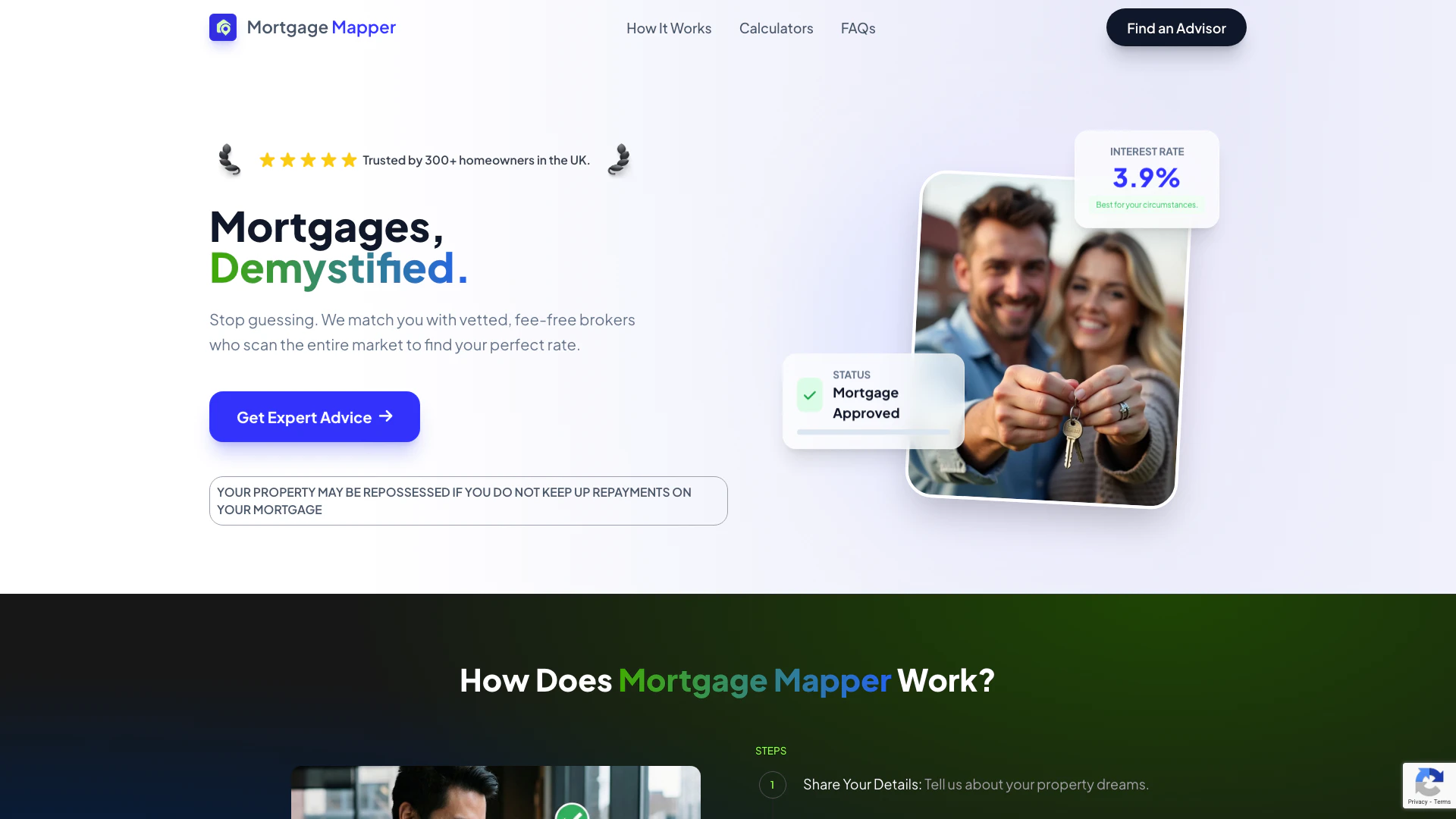 - Get Matched: The platform's algorithm will match you with a pre-vetted mortgage advisor who specializes in your area and circumstances.