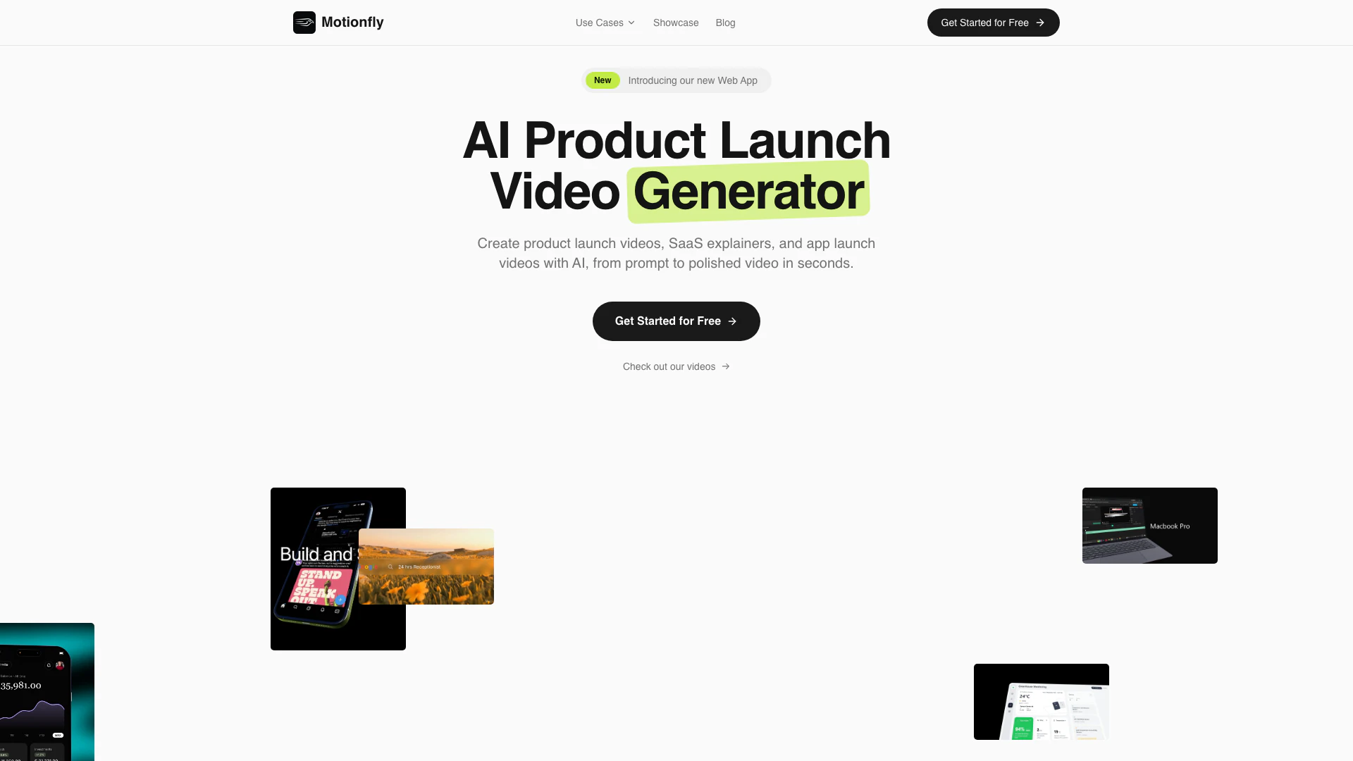 Get started free with Motionfly to create product launch videos, SaaS explainers, and app launch videos from a single text prompt.