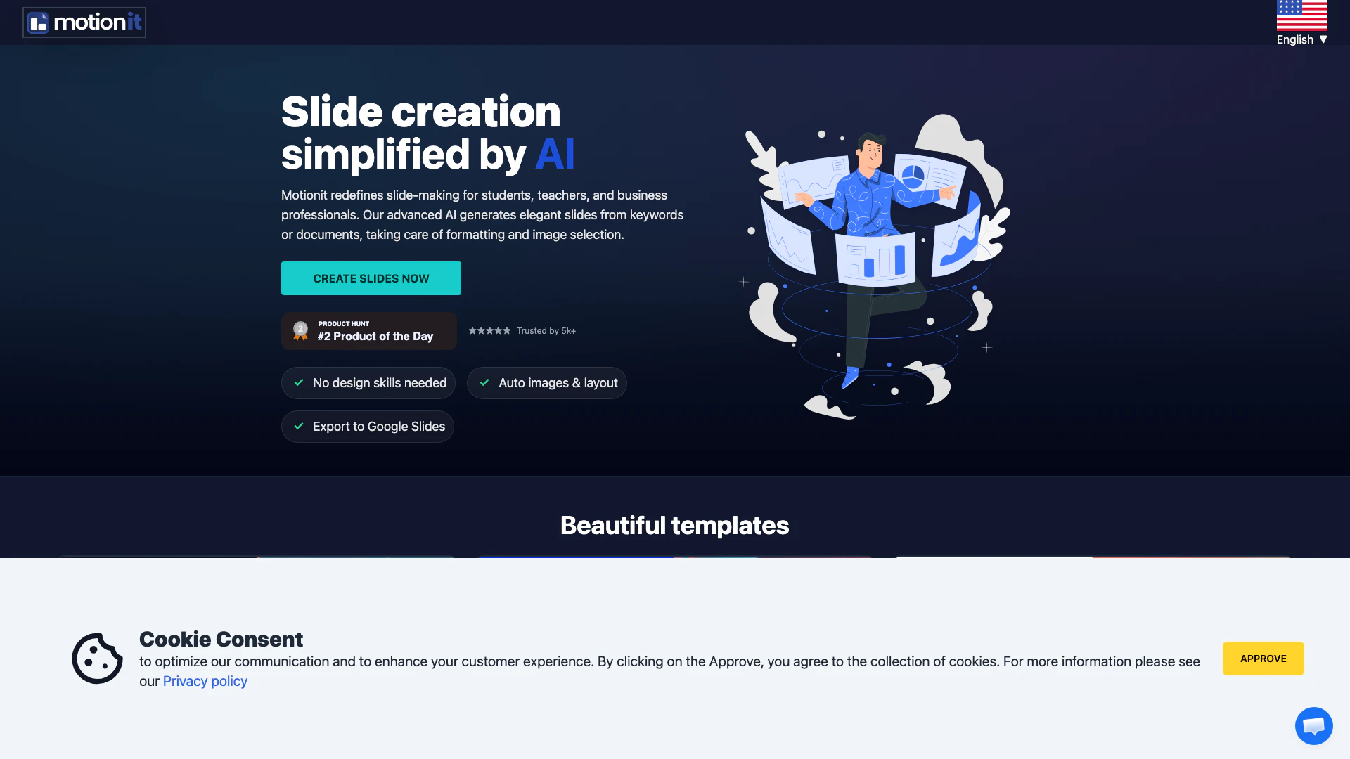 - AI-Powered Slide Generation: MotionIt.ai utilizes advanced AI to create elegant slides quickly from keywords or documents, saving users time and effort.