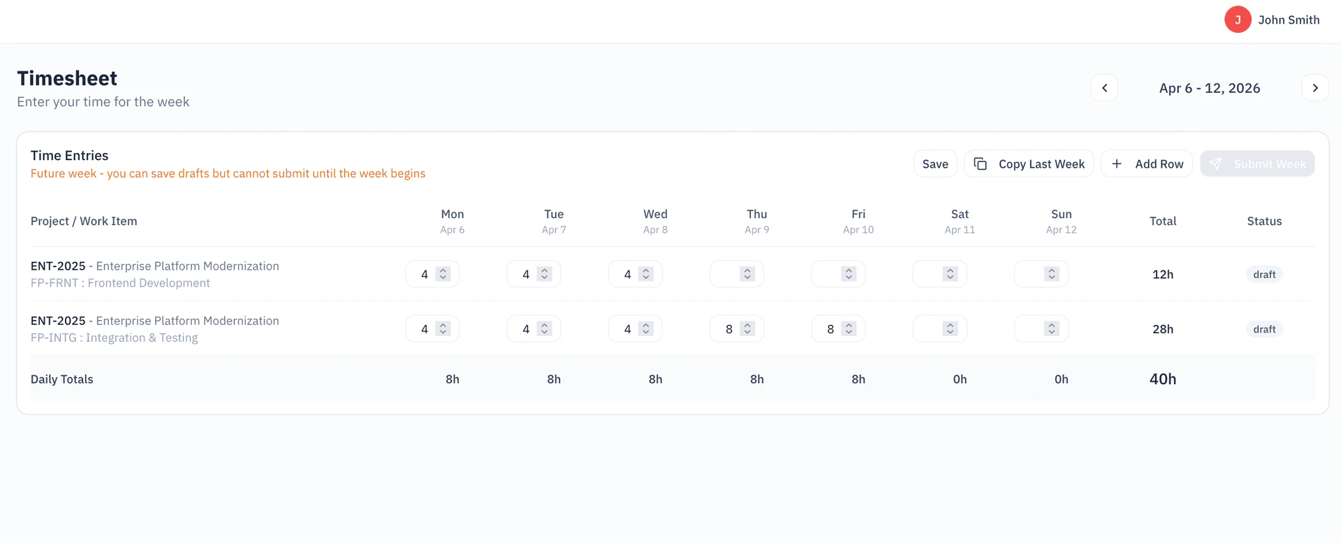 Finally, a tool that my team actually uses. Time entry used to be a battle—now it takes 2 minutes.