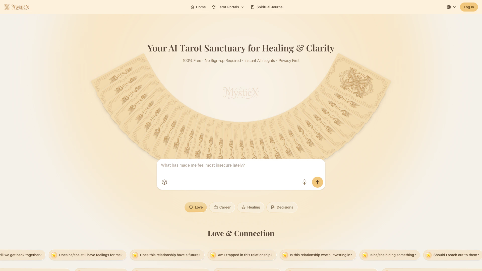 - Free AI Tarot Reading: MysticX offers completely free AI tarot readings without any signup required, making it accessible to everyone.