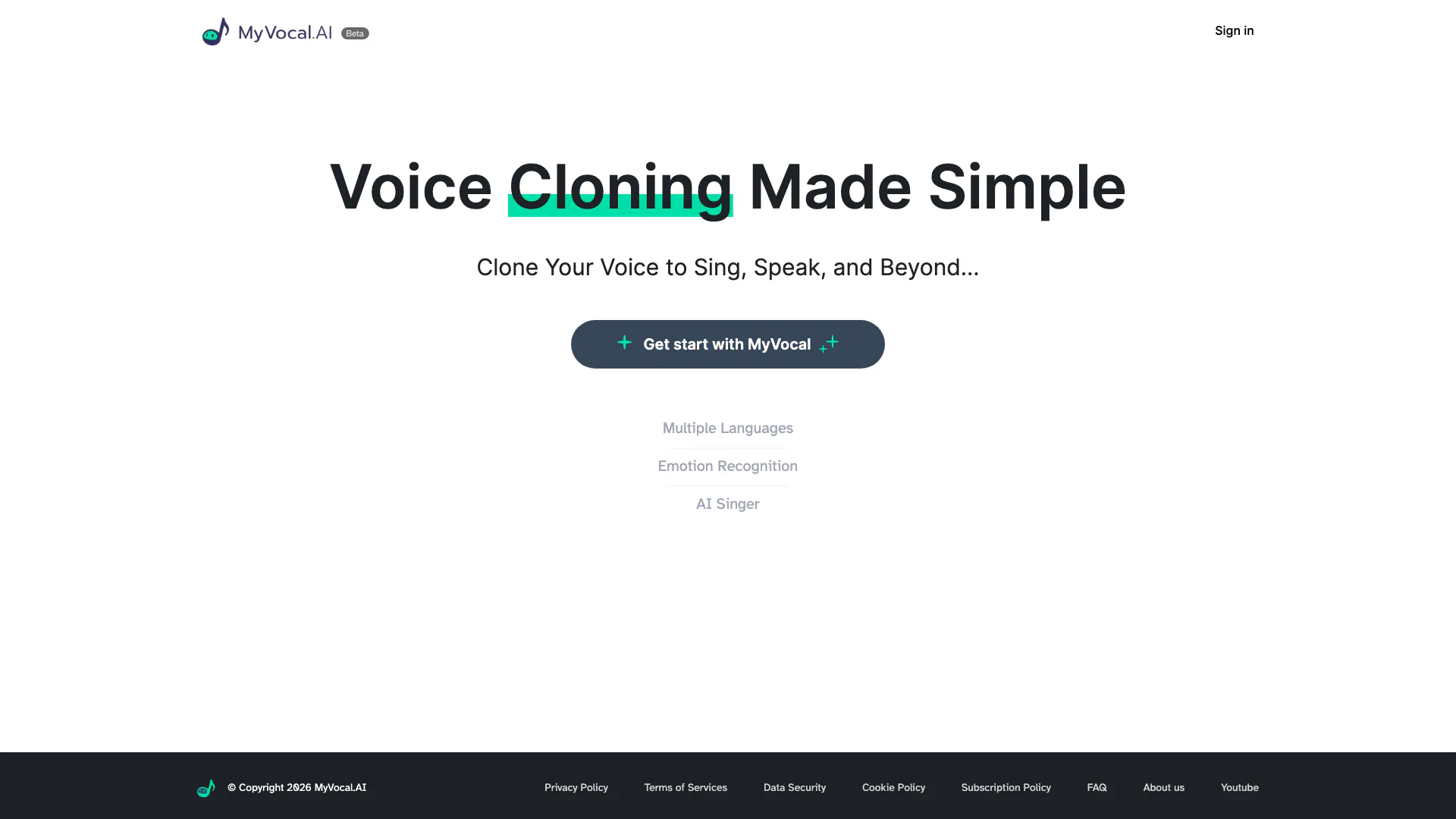 Myvocal Voice Synthesizer is a tool that allows you to clone your voice for singing, speaking, and more. It supports multiple languages and incorporates emotion recognition.