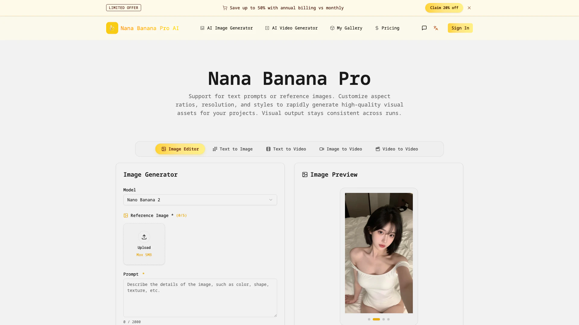 For the latest pricing, please visit this link: https://nanabananapro.net/pricing