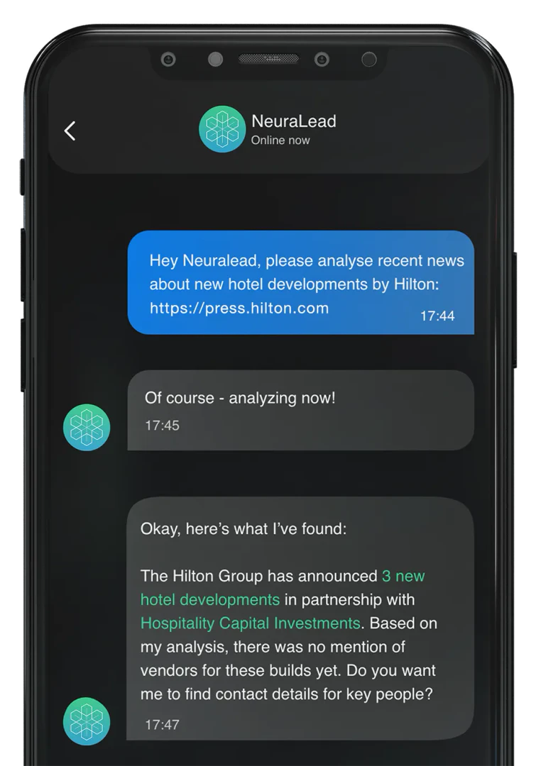 - Let NeuraLead process the information and automatically find leads that match your criteria.